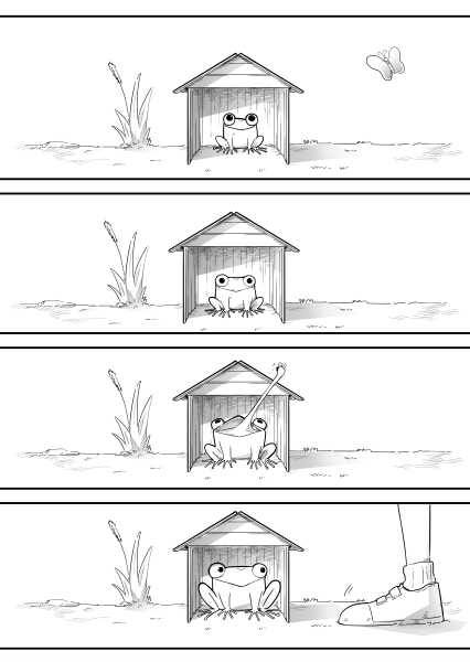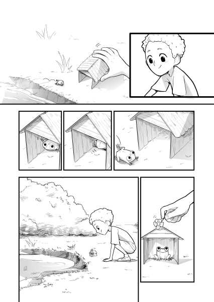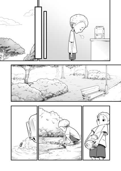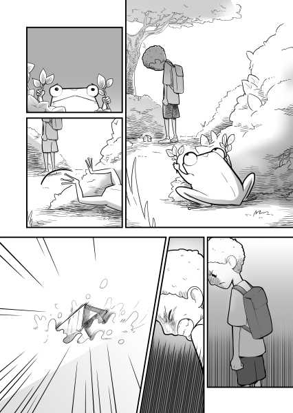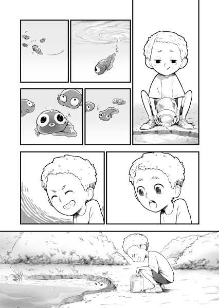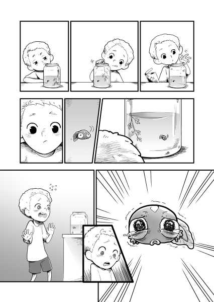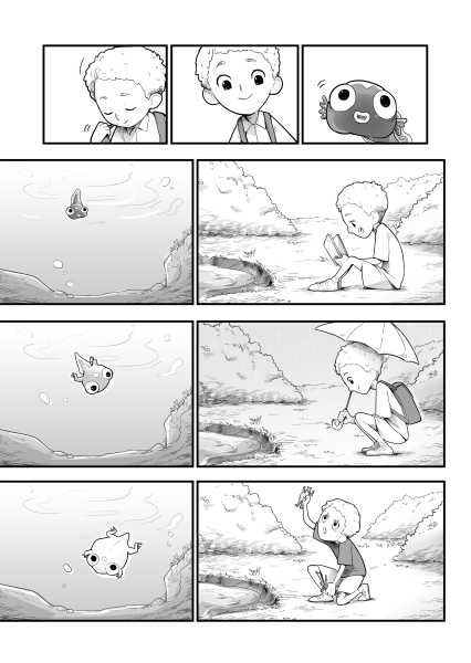 | “The story really focuses on two protagonists: the boy and the tadpole. The tadpole shows a variety of reactions; some well exaggerated and very sympathetic, too. The characters here are very well established. A good read.” | |