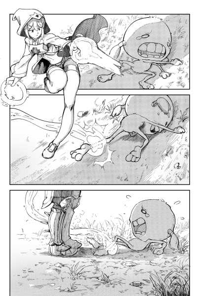 | “When I was small I have sweet dreams of being a badass knight with the most beautiful woman in the world as my sidekick. Together we'll hunt monsters and protect the innocence. It sounds cool, right? But it's not cool at all when we are the poor little monster being hunted. Those sweet dreams become nightmares. I hope this manga will make those nightmares of your childhood full of sweetness again.” | |