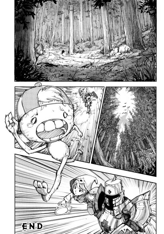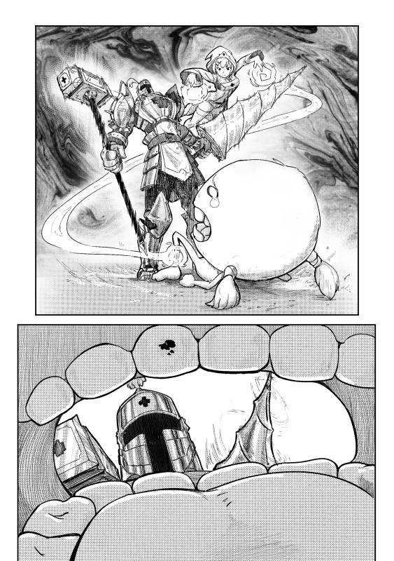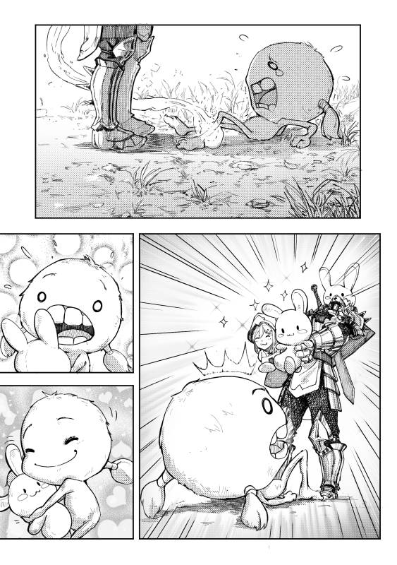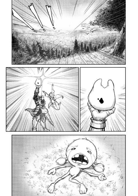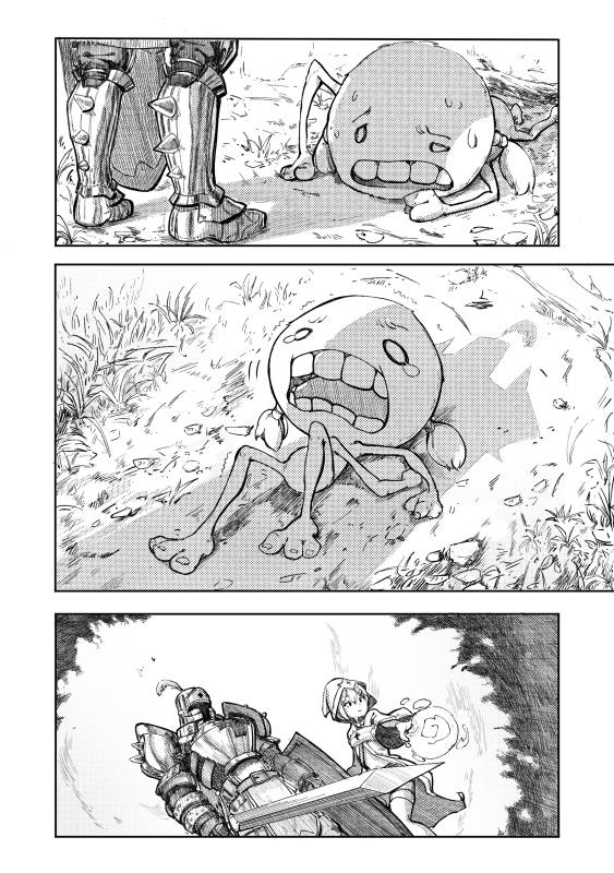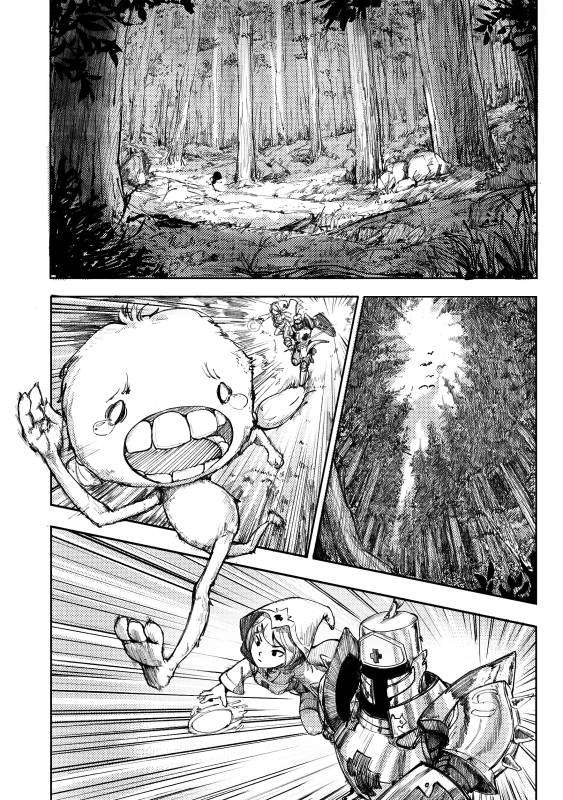 | “When I was small I have sweet dreams of being a badass knight with the most beautiful woman in the world as my sidekick. Together we'll hunt monsters and protect the innocence. It sounds cool, right? But it's not cool at all when we are the poor little monster being hunted. Those sweet dreams become nightmares. I hope this manga will make those nightmares of your childhood full of sweetness again.” | |