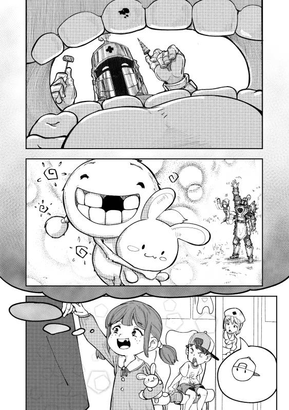 | “The Tooth Knight started with a very interesting point of view on how we saw dentists when we were young. Then the creator, Nattorin, didn't stop there, giving an interesting change of perspectives to great entertaining effect throughout the story.I saw much intent by the creator to tell an amusing story; a sign of great manga creator to come. Thank you for the wonderful work, Nattorin!” | |