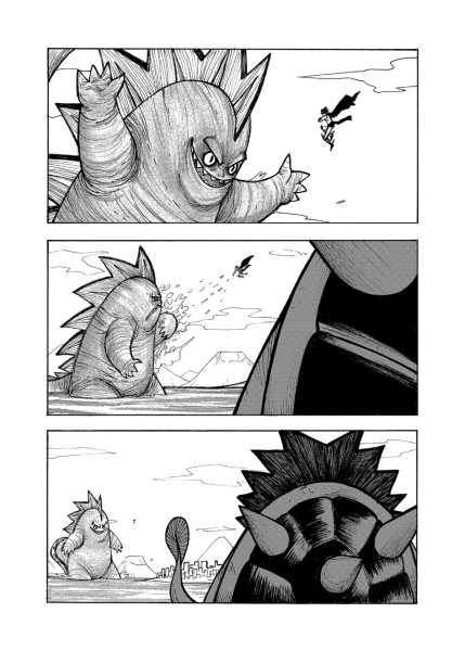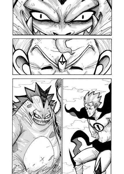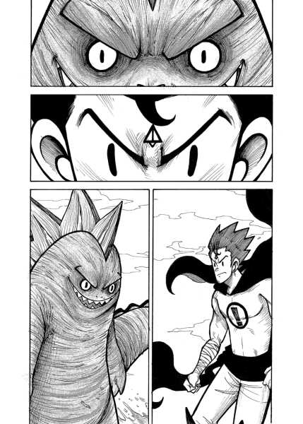 | “Hope you enjoy this manga. I loved to drawn it. Super Hero or Kaiju? Start!” | |