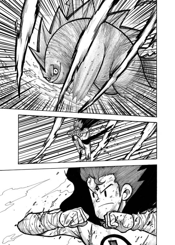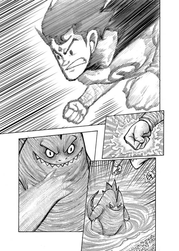 “Hope you enjoy this manga. I loved to drawn it. Super Hero or Kaiju? Start!”