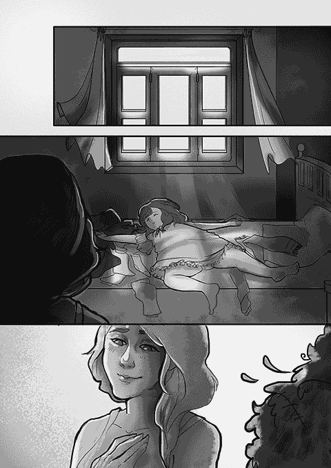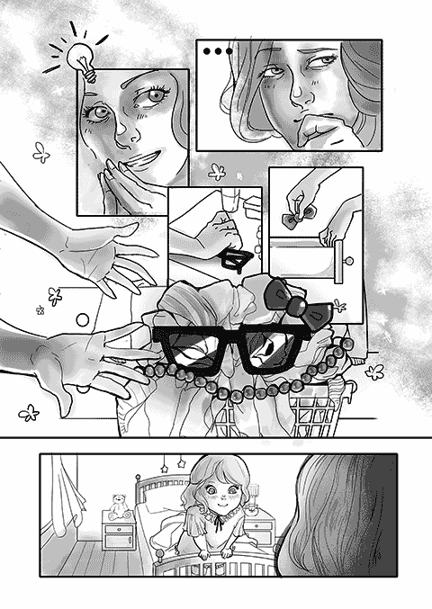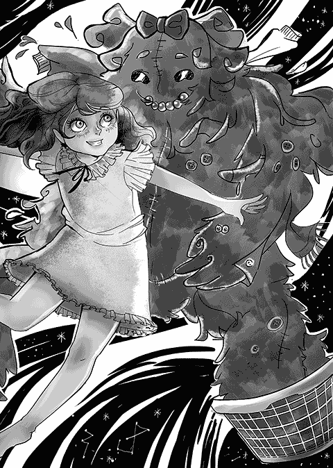 “When the girl uses her imagination to overcome her fears and sees the Laundry Monster for the first time.”