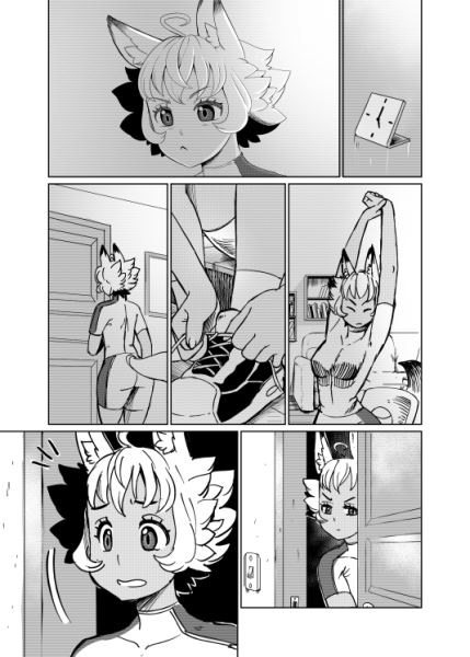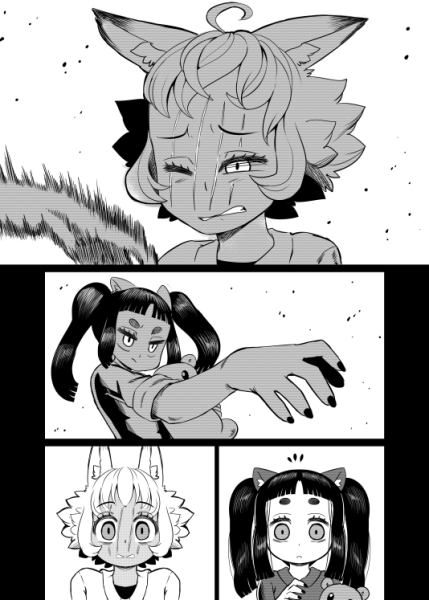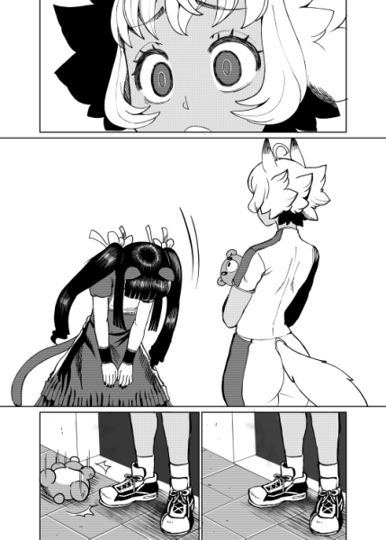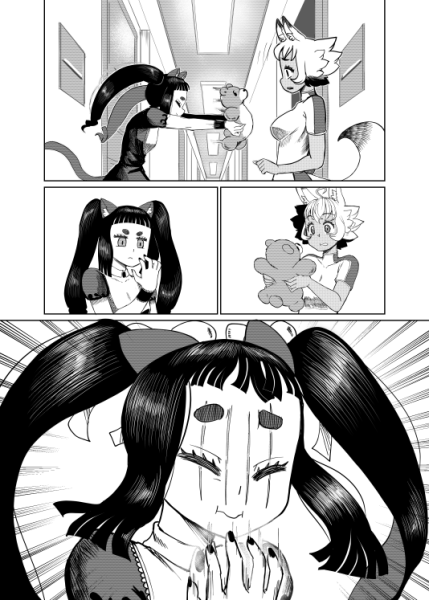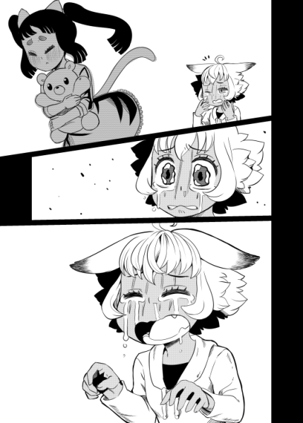 “My favorite part is page 11 and 12, when the "fox girl" cry for the physic pain, and her best friend "cat girl" is very embarassed with her own act and running from there, making "fox girl" cry even more, now for something more painful than the scrath: feeling betrayed for a loved one.”