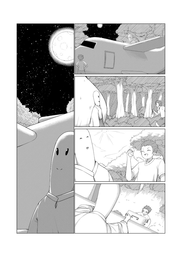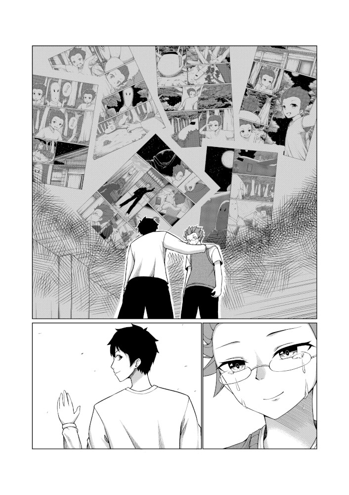 | “The part when the protagonist strives to study to meet again his friend and wanted to be astronaut but sadly he fail his thesis for many times. But because of the man he met, he remember his friend alien and change his life for being positive until he graduate and begin his quest for finding his friend” | |