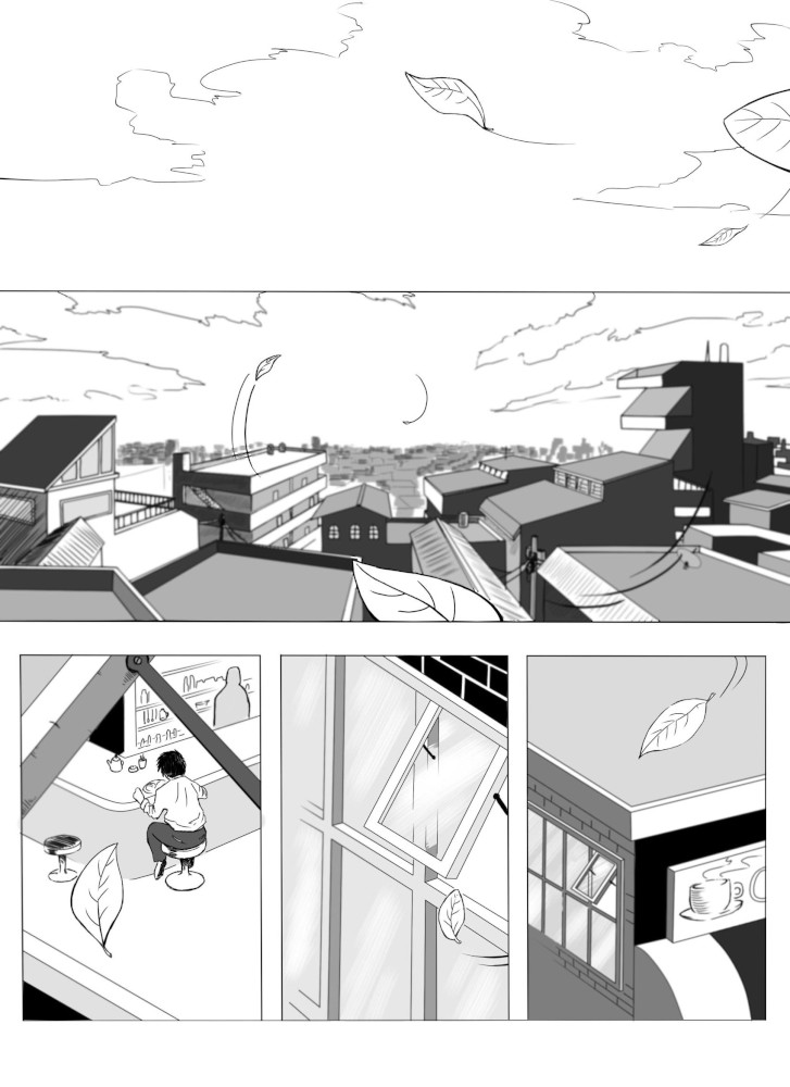 | “Make this manga was really hard because of the lack of time but I maged some how. I think I learn a lot about transitions between drawings and pages.” | |