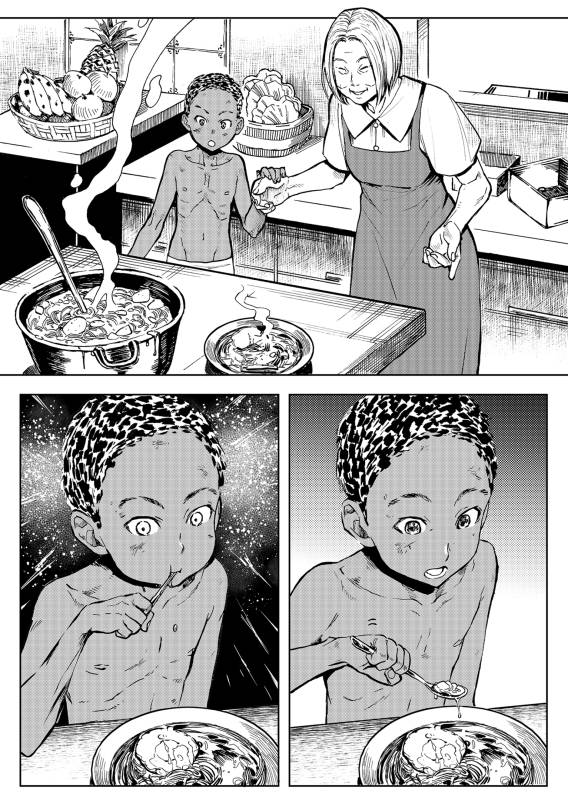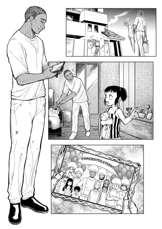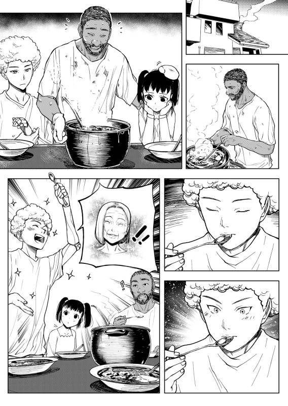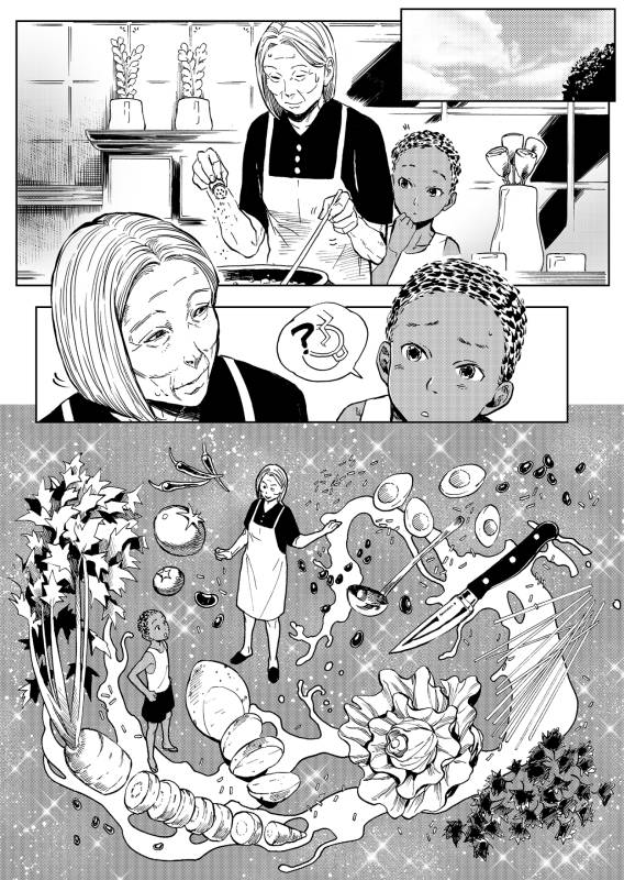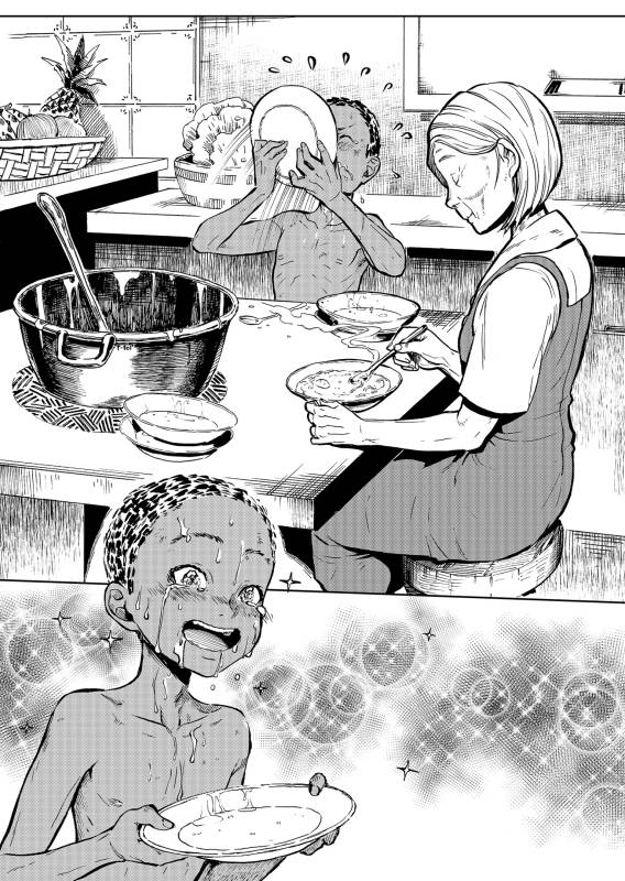 “物語を作るだけでなく、作った物語で人の心を動かすことが大事だと思います。人の心を動かすことで、どんな小さな行動でも、大きな影響を与えることができます。愛のこもった食事は、子供達の目を輝かせることができます。私たちが住む世界は病んでいます。だから、私たちは愛を人々に届けられるように努めなければなりません。この漫画が、スタッフのみなさんだけでなく、世界中の読者さんを感動させられることを願います。この作品で得た賞金は「国境なき医師団」「Team UnLimbited」に寄付しようと思います。この漫画を通して、より多くの人が「世界にはこんな素晴らしい人が生きている」と知ってくれたら幸いです。私たちに共感し支援してくださるみなさんに感謝を。”