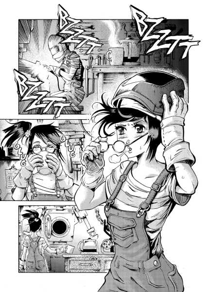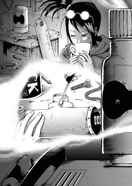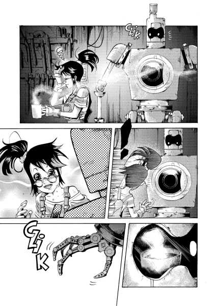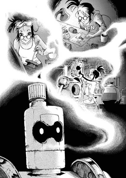| “Mariano: The first double spread. I love the first appearance of the robot that the girl built. Lea: Backgrounds and small details like textures, the girl's eyes.” | |