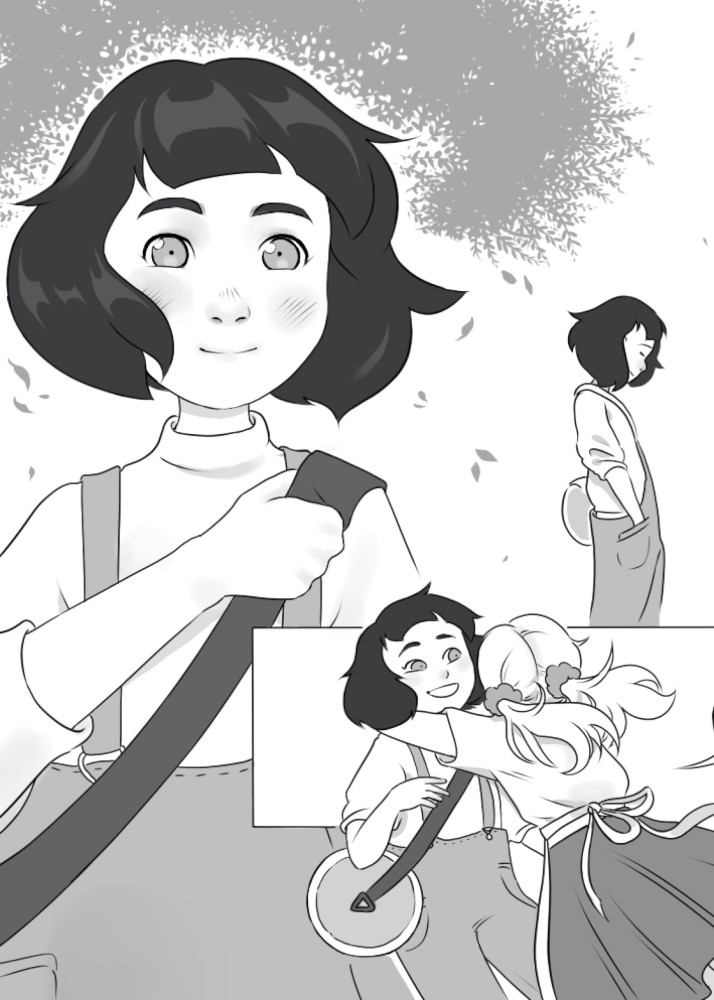 | “時に私たちは、本当にやりたいことや成し遂げたい目標ができないことがあります。ですが、必ず道はあります。大げさかもしれませんが、作品を通じてこのメッセージを伝えようと思いました。それと、友情は夢へと向かう原動力になってくれます。” | |