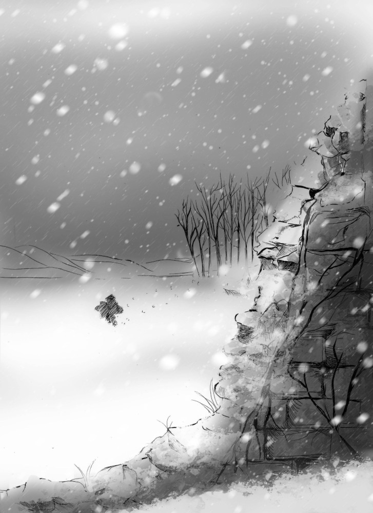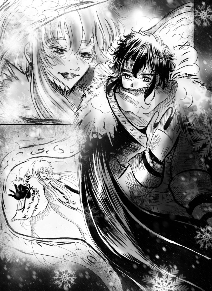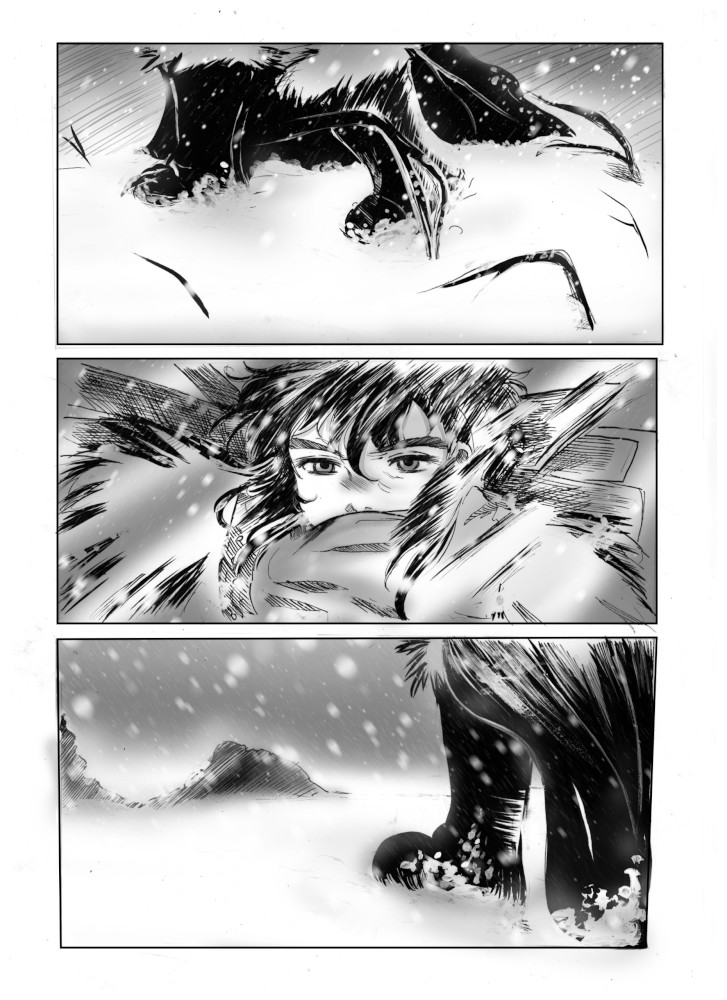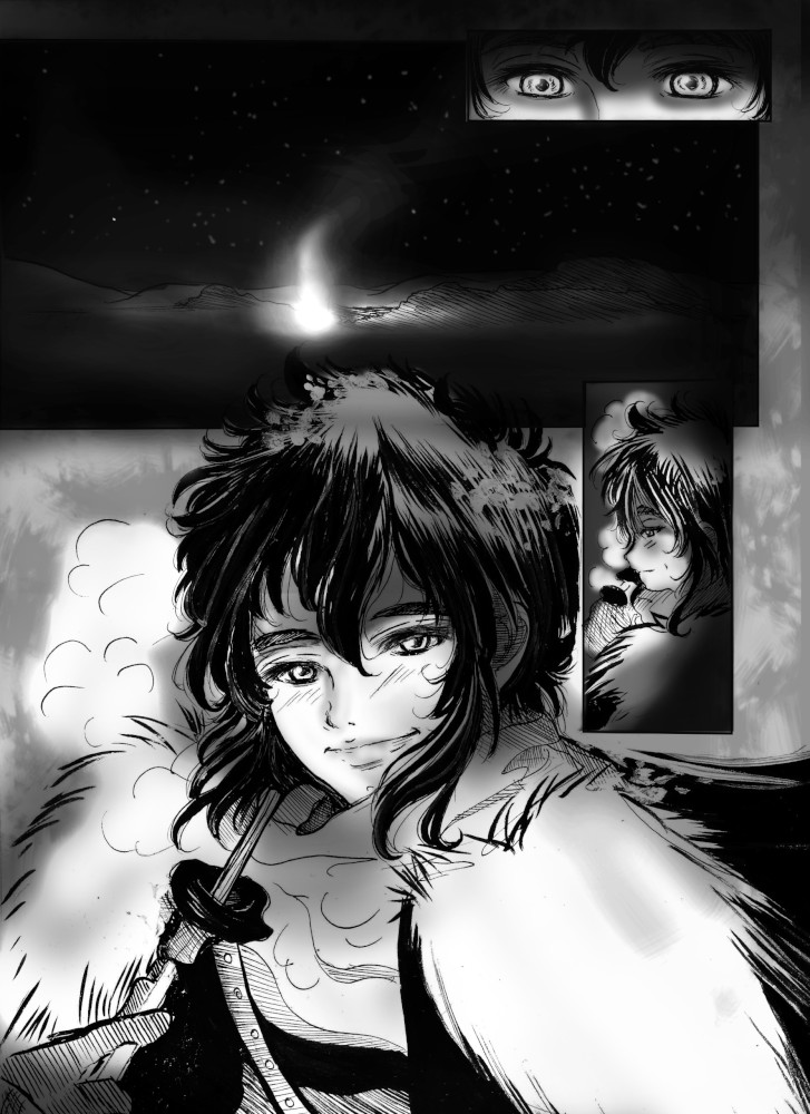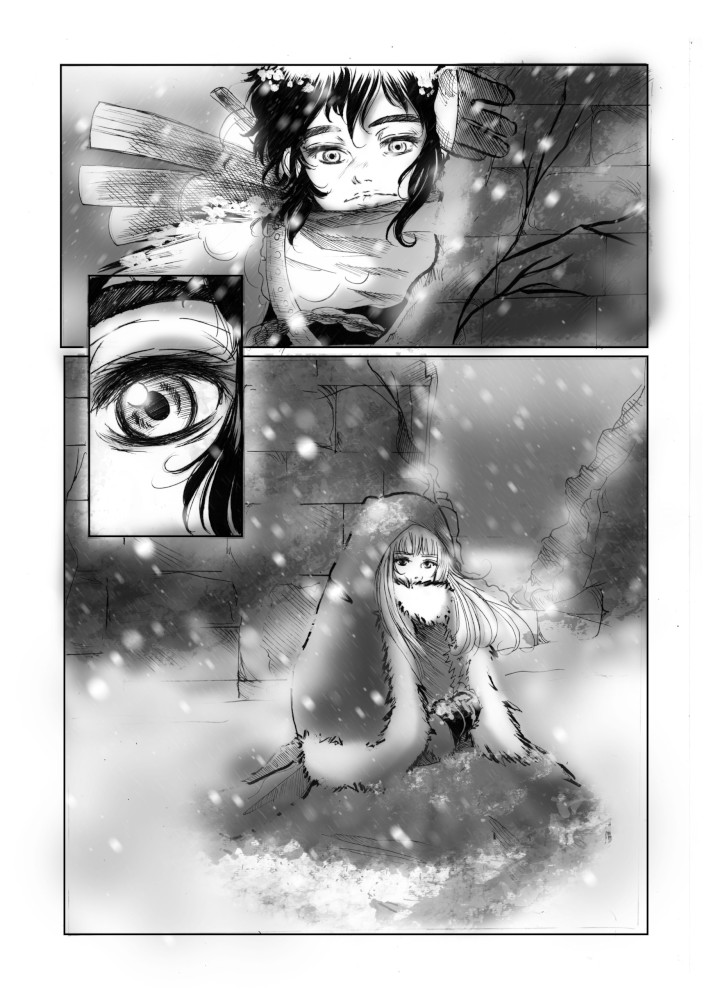| “The encounter of the boy with the mysterious girl in the ruins.” | |