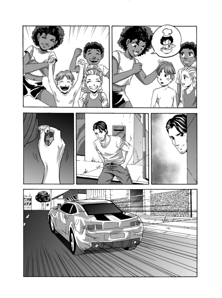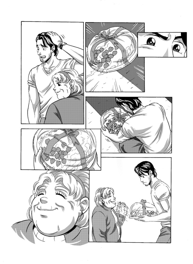| “I hope everyone has fun with my story, I made it with all my dedication and love for manga! This story shows how we can make someone happy with a simple act! Using the love for that unforgetable pie, he made lots of kids happy!” | |