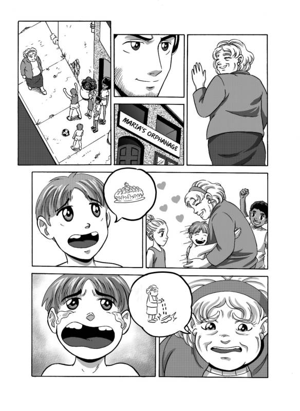 “My favorite part is when the protagonist see the orphans asking for the strawberry pie, he's hiding and he runs to buy a pie as a surprise for the kids, at the same time he remembers the time when his mom used to cook and make a deliscious strawberry pie for him!”