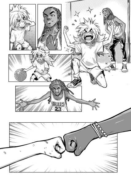 | “Martisha's speechless admiration of Akoni's moves, who is considered short compared to most men but still capable of exhibiting great skill.” | |