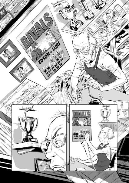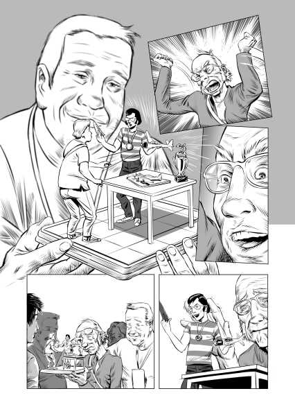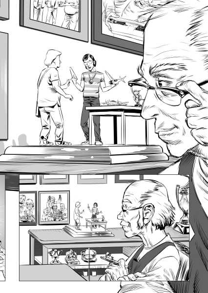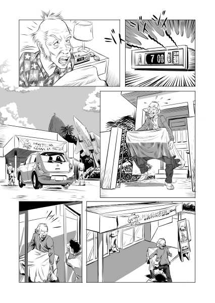 | “気に入ってる箇所は2つあります。まず、二人のキャラクターが年を経ていくところ。それと、私の大好きな船・飛行機・車のプラモデルを描けたこと。” | |