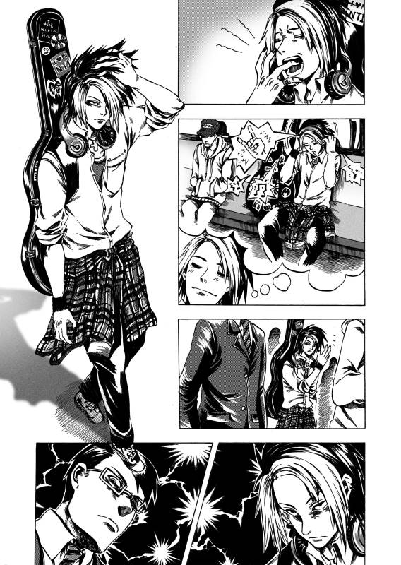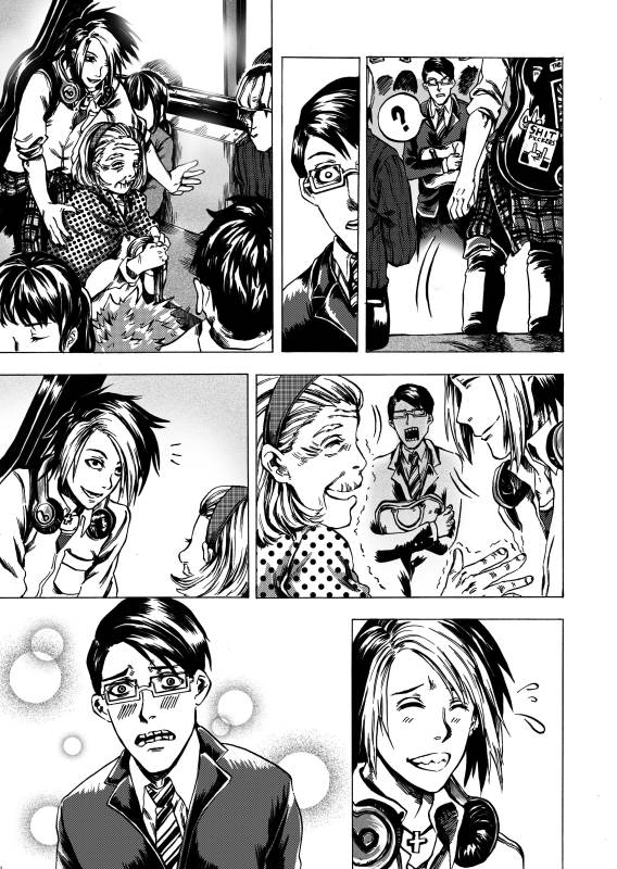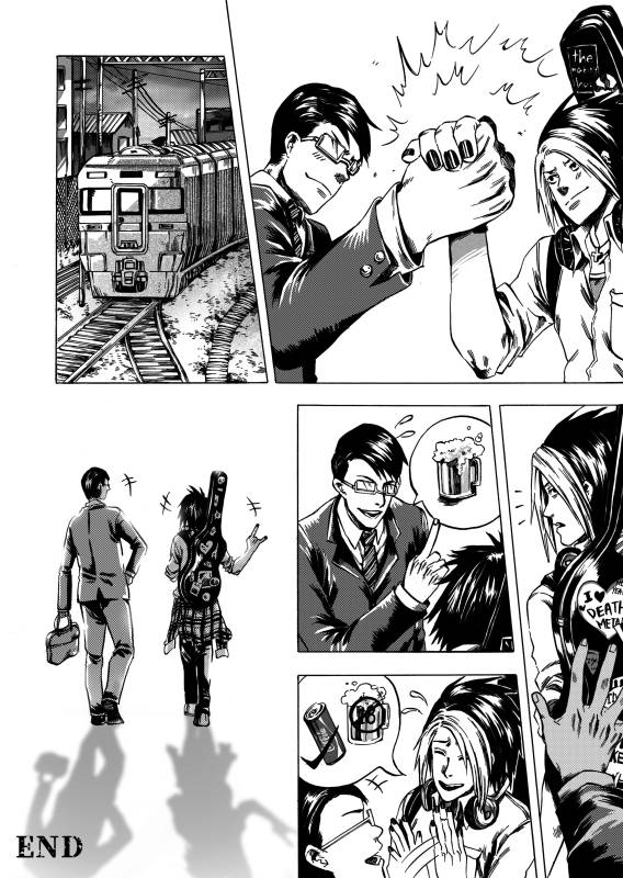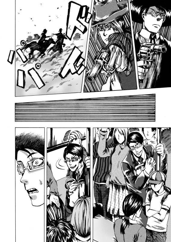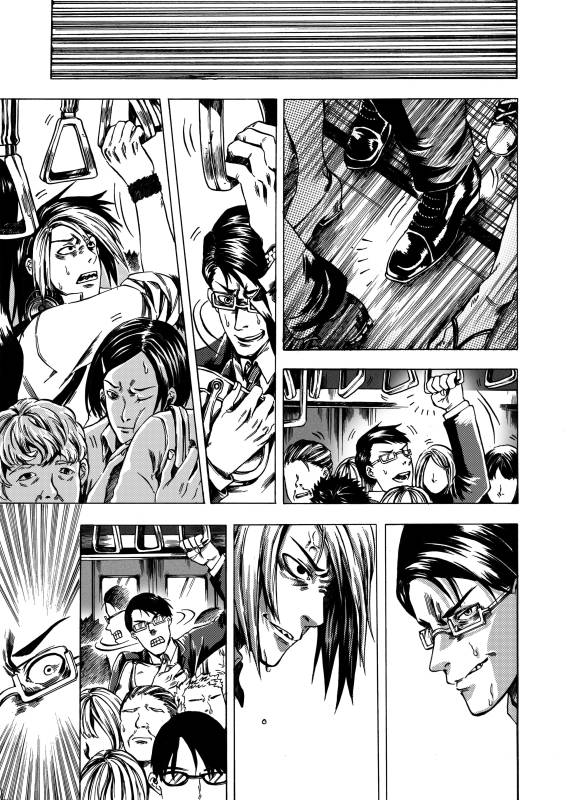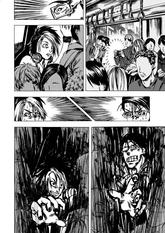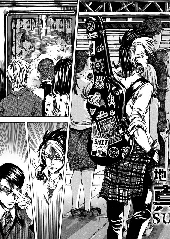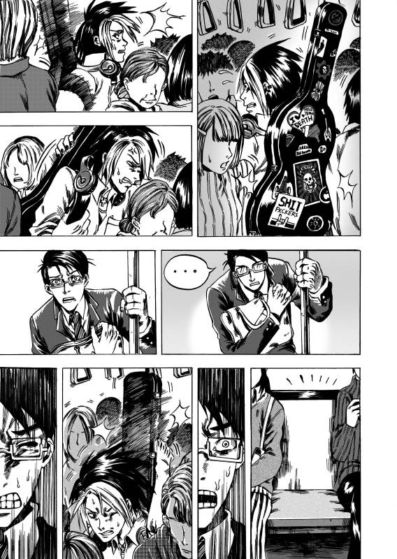 | “メガネ男とギター男が地下鉄の空席を巡って必死に戦うところ!” | |