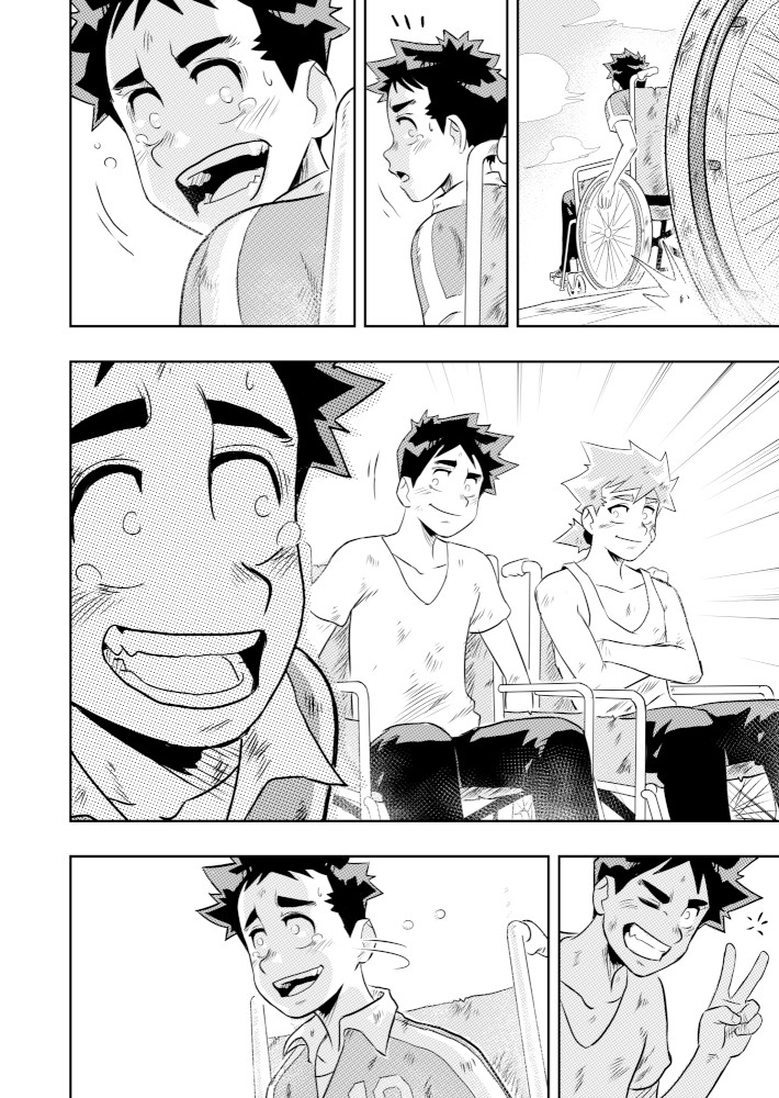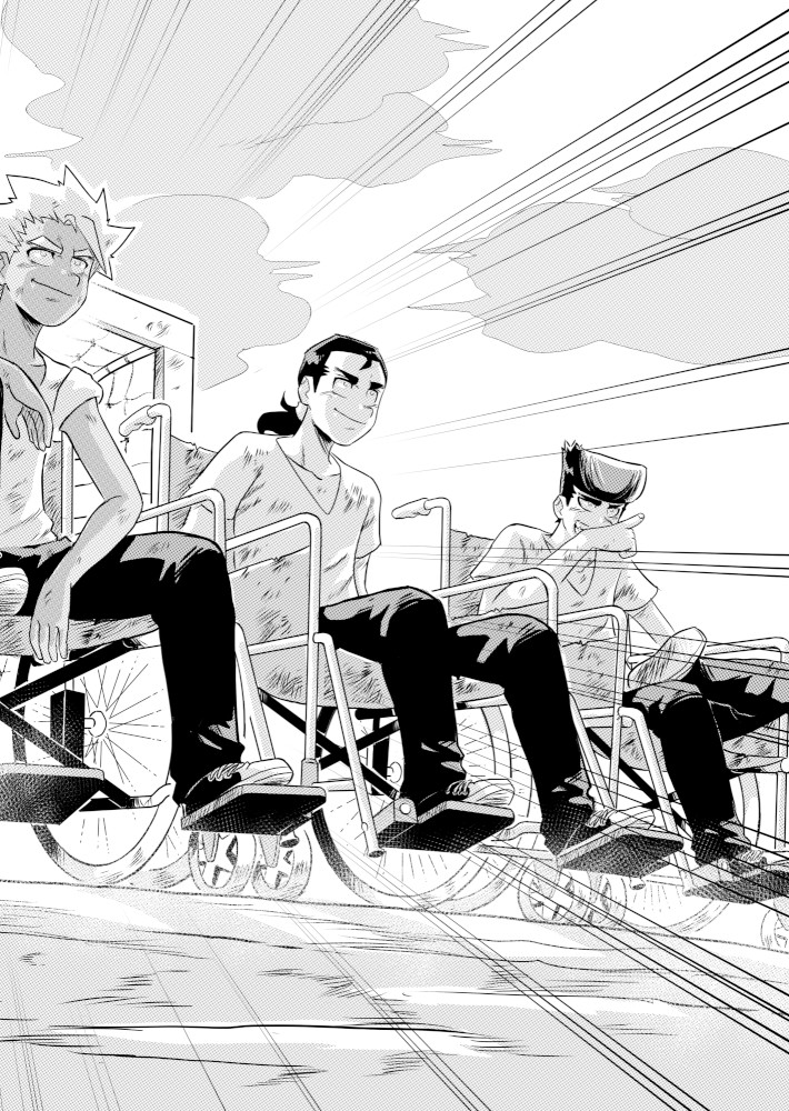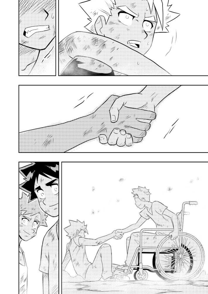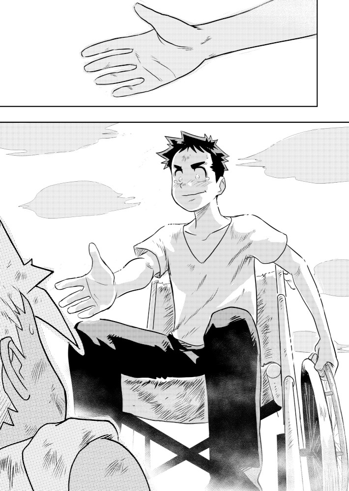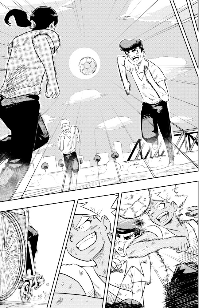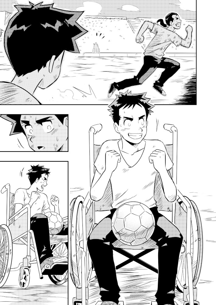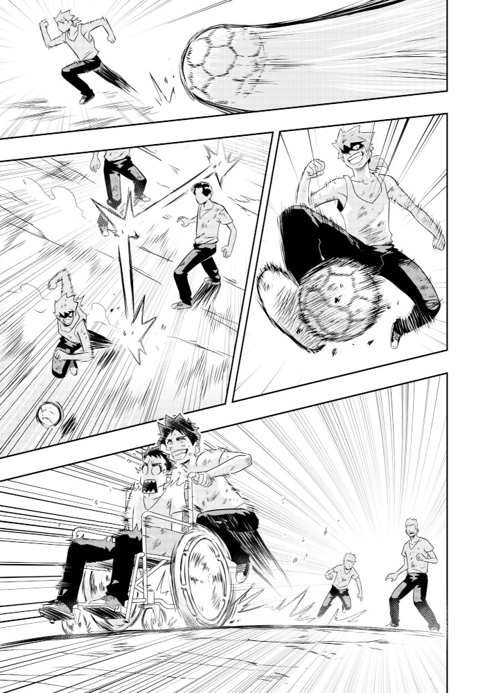 | “The part I like the most is where the boy on the wheelchair sticks his hand out to help his opponent. Here I tried to let converge all the emotions by showing to the reader the true meaning of Fair Play. I think that if there is the WILL to take the first step, soon or later then you will be returned.” | |