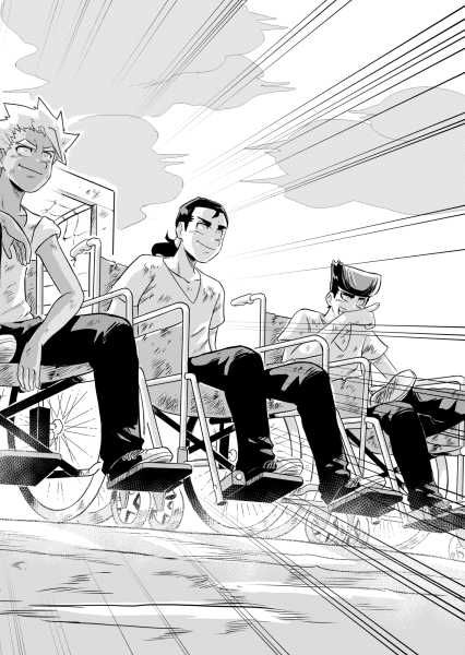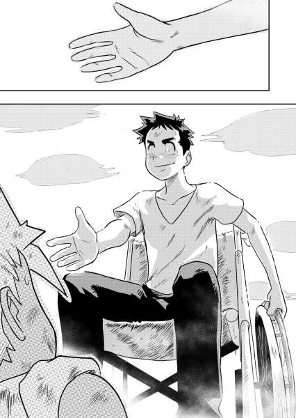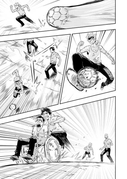 | “The part I like the most is where the boy on the wheelchair sticks his hand out to help his opponent. Here I tried to let converge all the emotions by showing to the reader the true meaning of Fair Play. I think that if there is the WILL to take the first step, soon or later then you will be returned.” | |