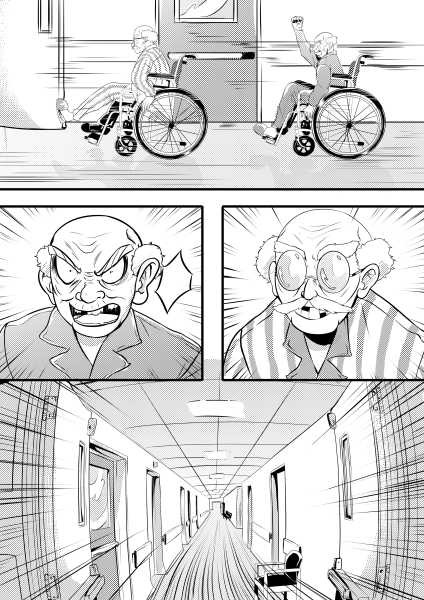 “I draw this entries while I was in a period in hospital for my family, and I thought that the people get bored while they are at the hospital. So I thought it would be fun to imagine a race between two elderly gentlemen! I hope this give you a smile while u reading this!”