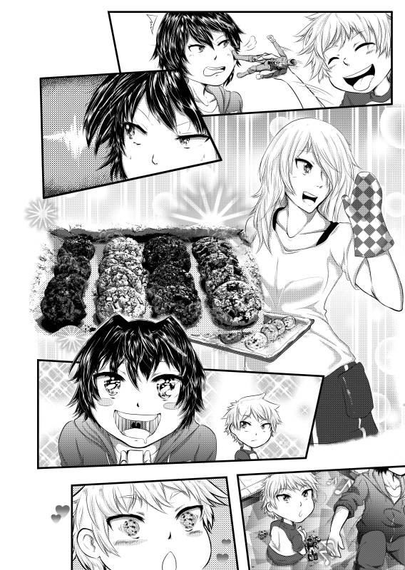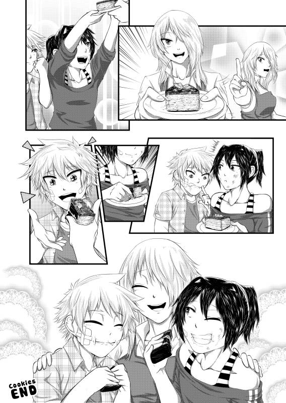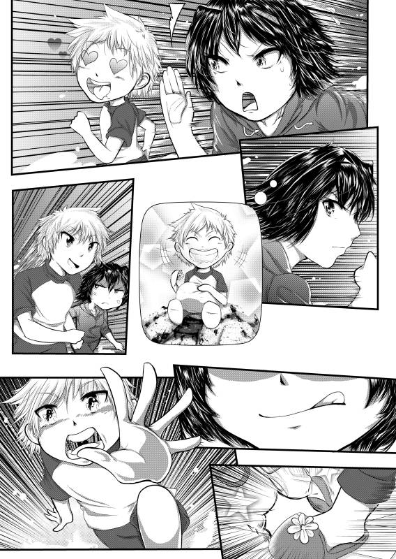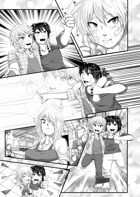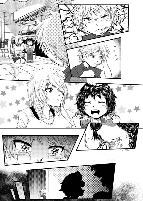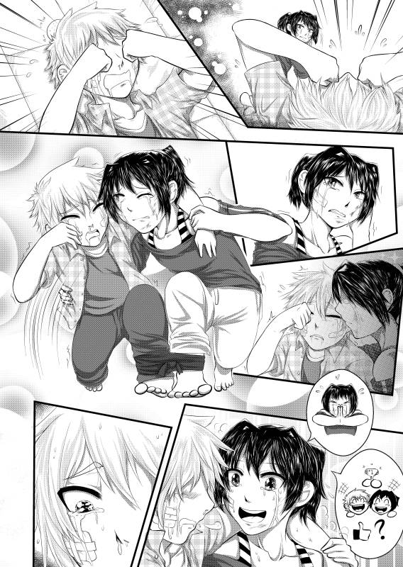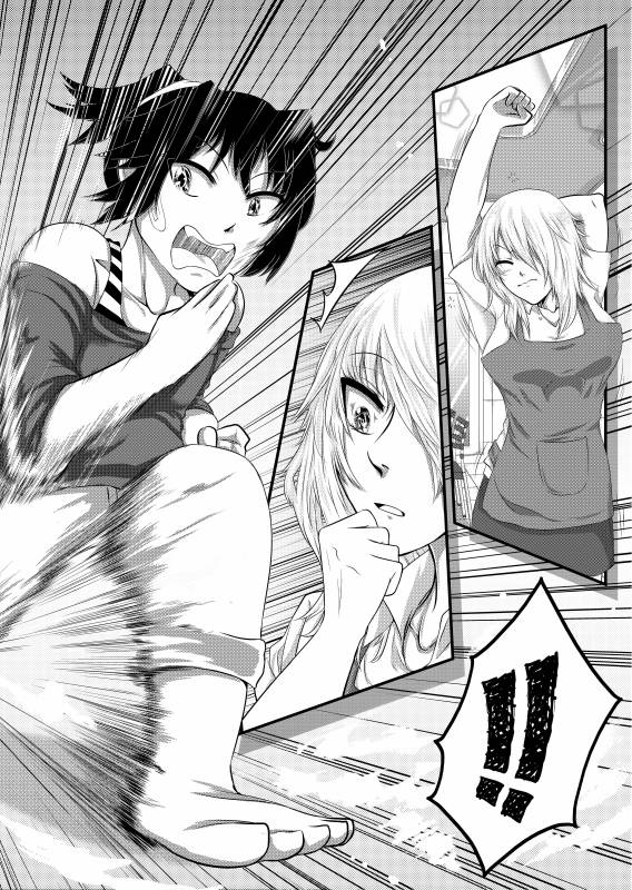 “It's funny, when I was drawing my manga, I felt like I was looking at my old reflection, since I was 7-10 years old, with my sister. We used to fight each other just for the simplest thing, because we both were rivals at the time. And also we always being scolded by our mom, even though it's useless because we did it over and over. XD So I made this based on my experiences with my little sister. So nostalgic, reminds me the old times since I was a child. I think the double-paged spread is the hardest part of all, because it was the first time for me to draw manga by using 2 pages simultaneously. And I also laugh when I see the children are being tied by their mother, and it's reaction, it's really really got the feeling. Oh yes, here's the name of the characters : 1. Mother - Jenny 2. Girl - Milleva 3. Boy - Jean”
