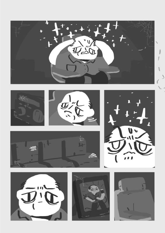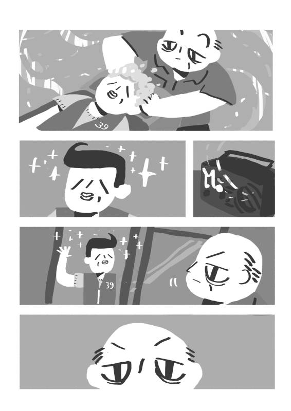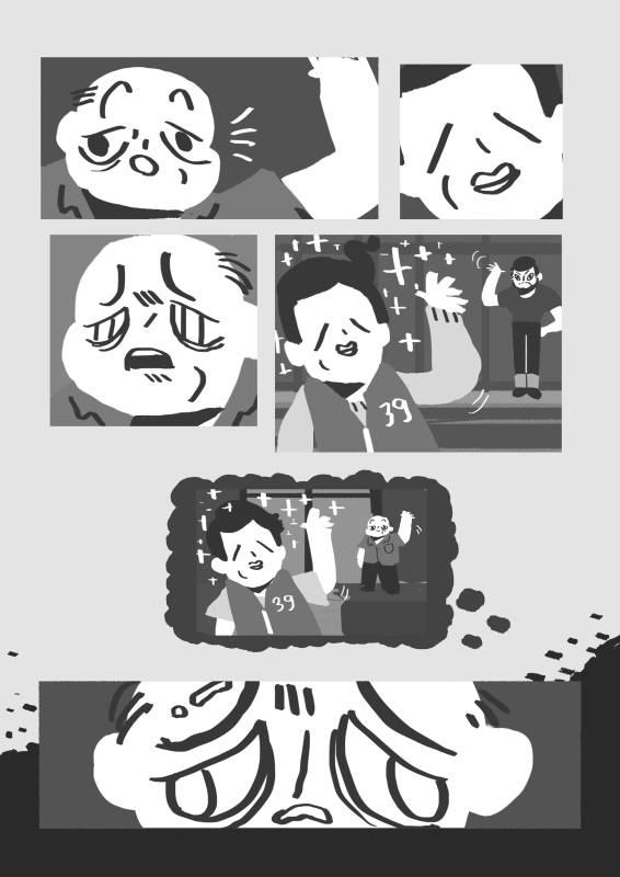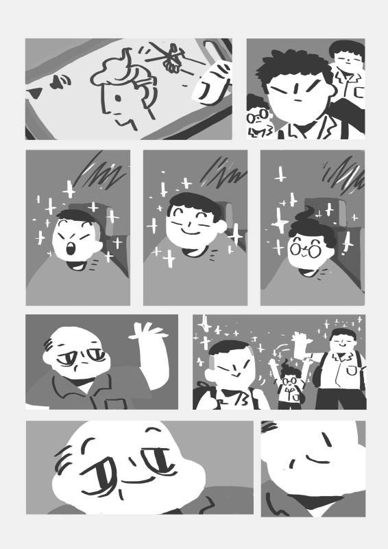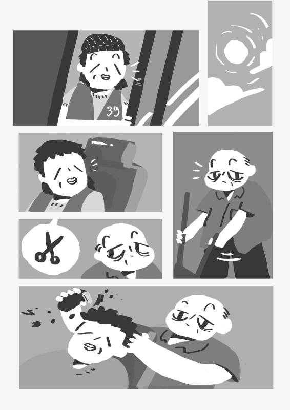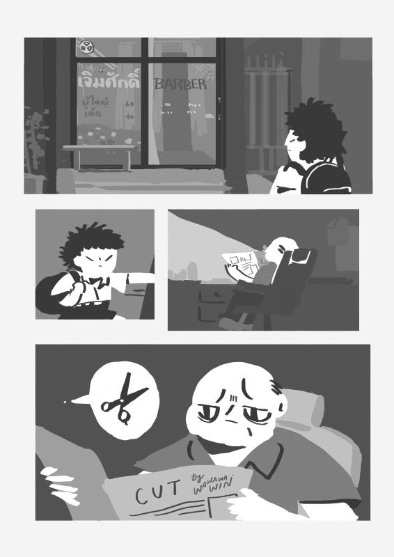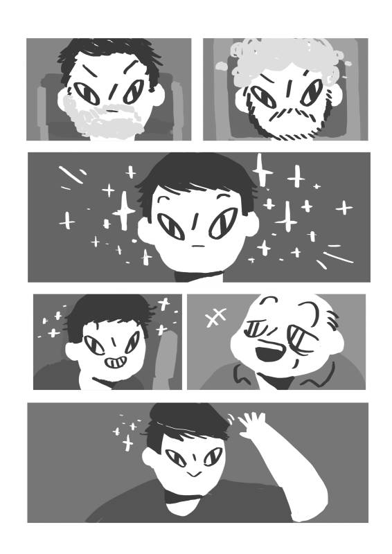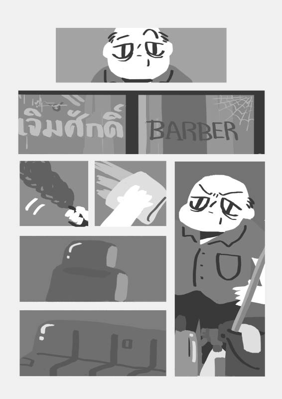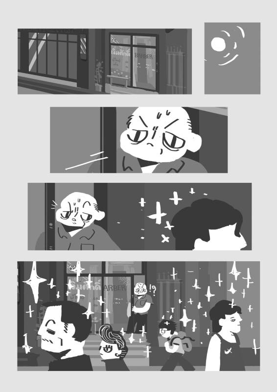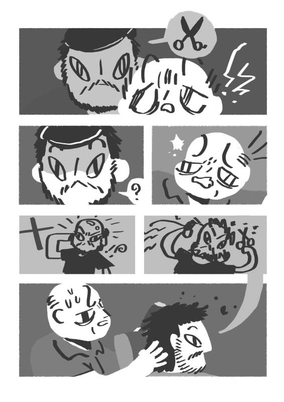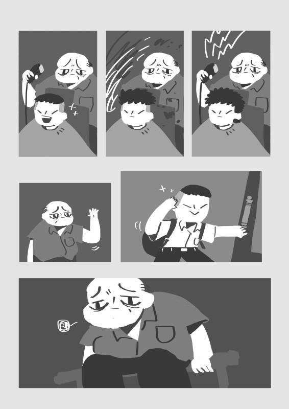 | “- when an old barber enjoy hair spa from a young baber.” | |