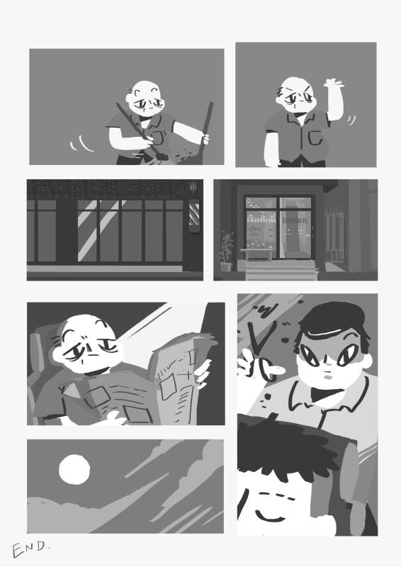 | “The only one barber in an alley. He lives in his boring solitude life. Until now, When The brand new barber shop open next to his barber shop !?” | |