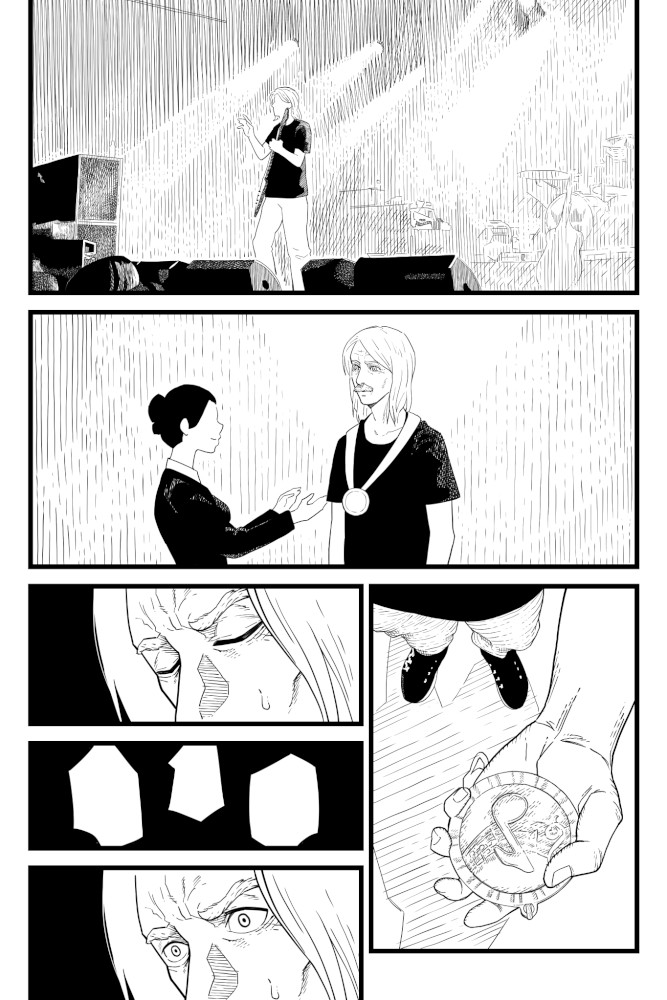 | “That moment when the curled-hair man came up on stage and heated the audience, he received the respect from his whole-life rival.” | |