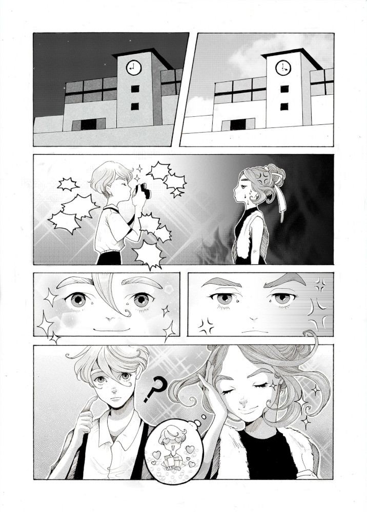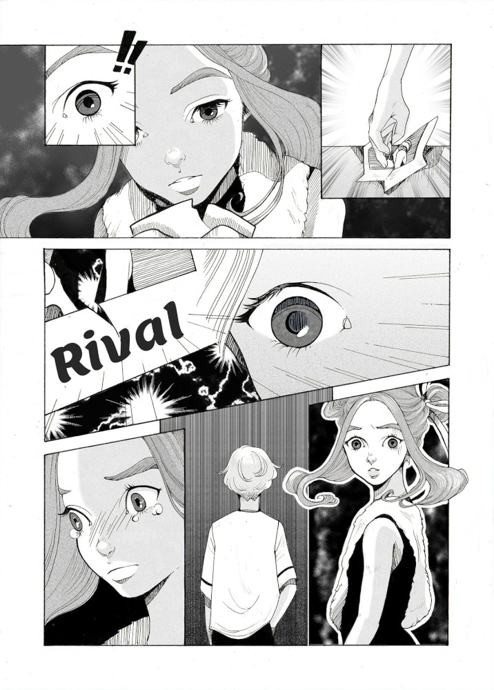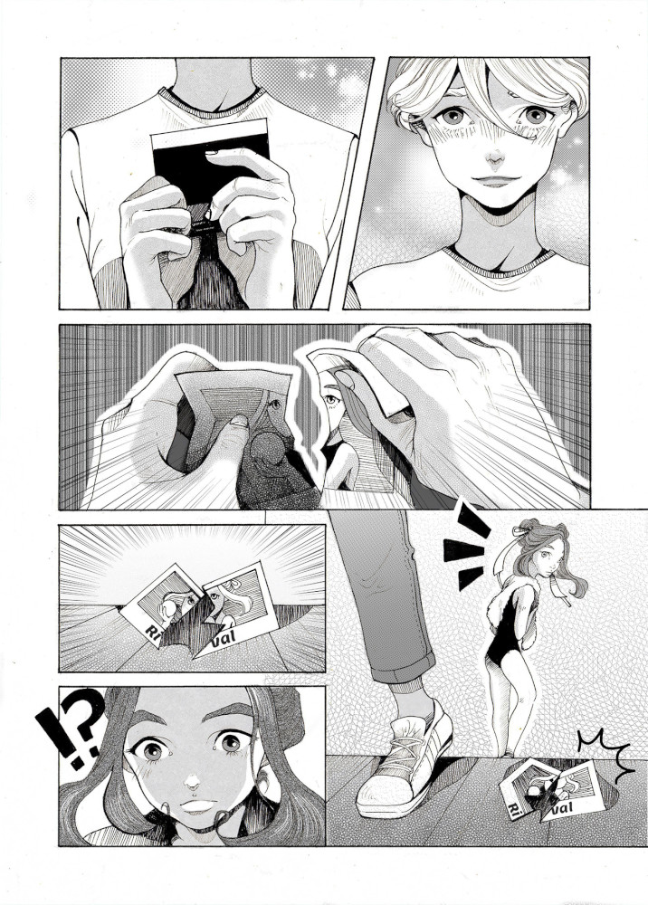 | “The moment when the boy rips the picture, because he decides not to take advantage from the infos about the girl and decides to follow the example of the girl, who tries hard to succed without any shady tricks. He refuses to achieve his goals and a sure victory in order to follow his true feelings.” | |