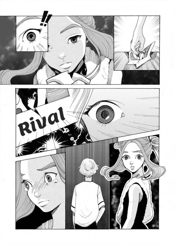 | “The moment when the boy rips the picture, because he decides not to take advantage from the infos about the girl and decides to follow the example of the girl, who tries hard to succed without any shady tricks. He refuses to achieve his goals and a sure victory in order to follow his true feelings.” | |