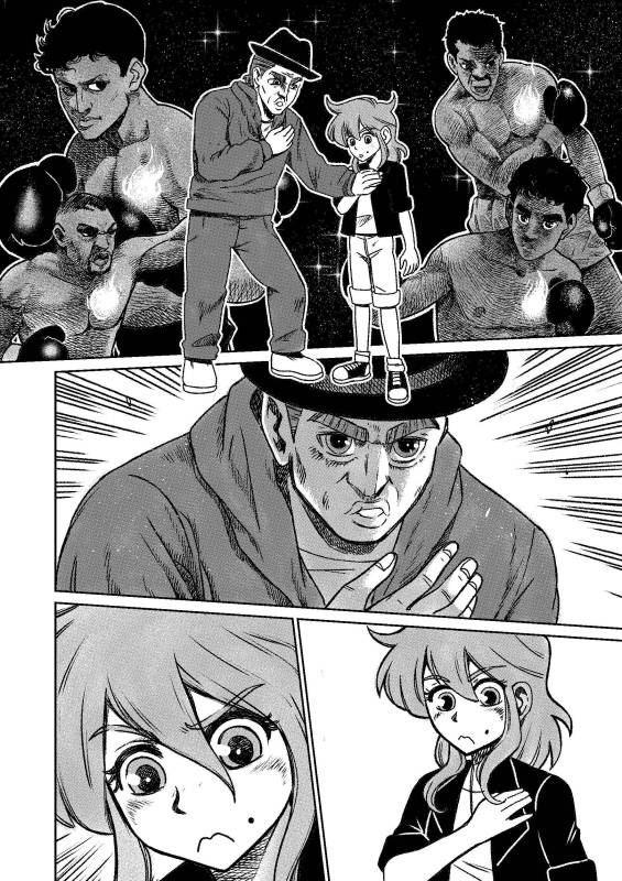 “Watch Rocky - the fighter. This is my favorite movie. Stallone is my favorite actor and I used all of Rockys energy to make this manga! Lets go boxing!”