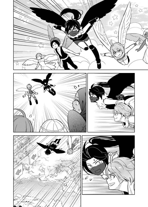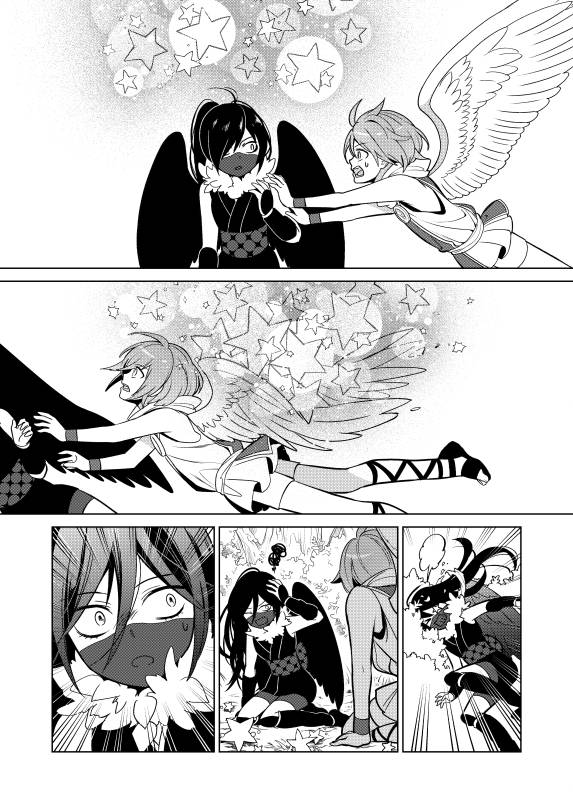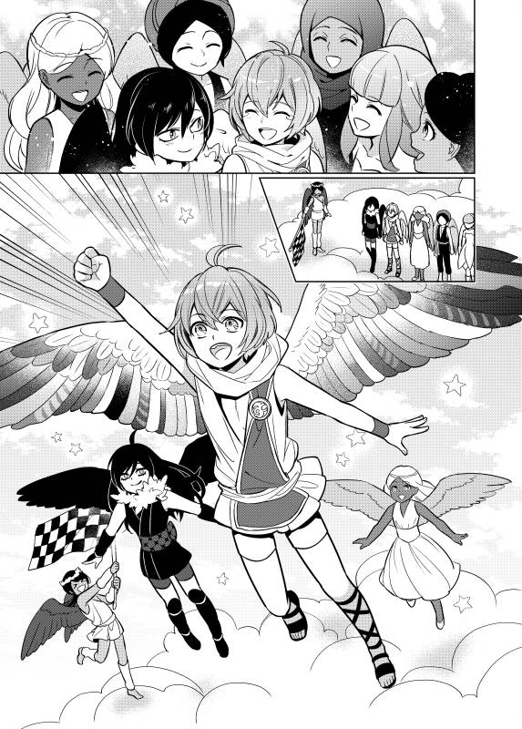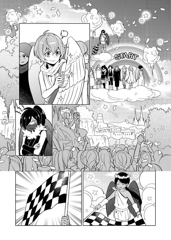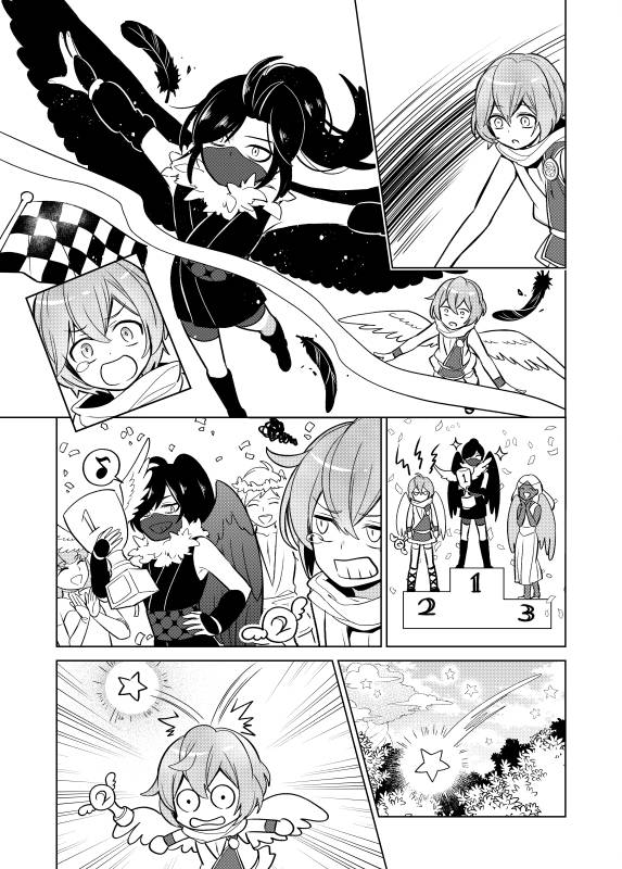 “星降る空を駆け巡る、飛天たちのレースです。一体何が起こるでしょうか? 最後まで読んで頂けると嬉しいです。制作にあたっては飛天たちの個性にこだわりました。”
