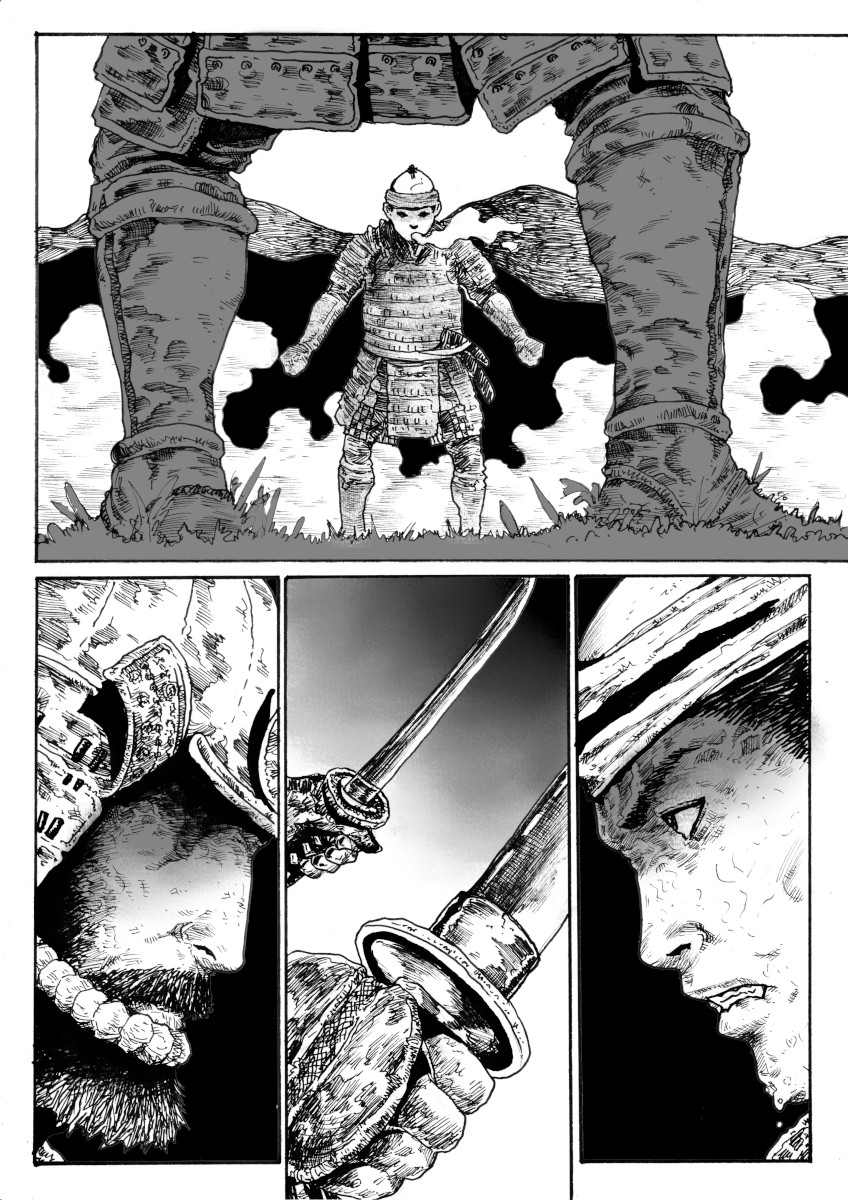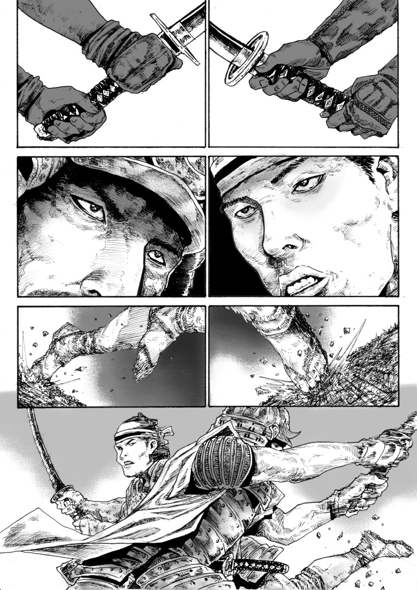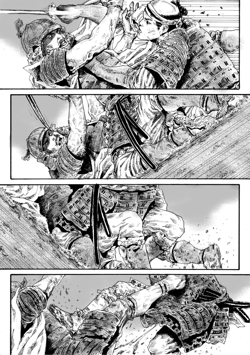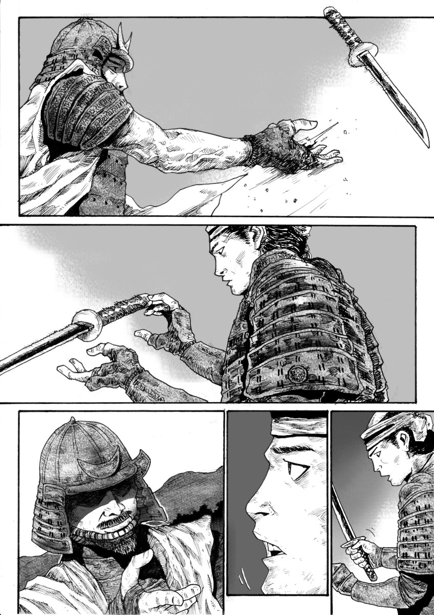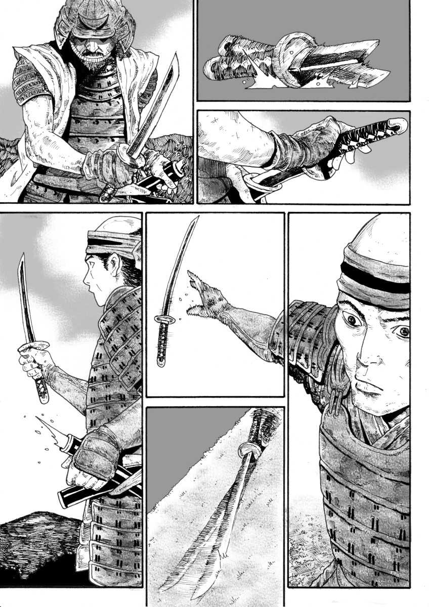 | “when a samurai wearing a helmet returns the sword of his opponent” | |