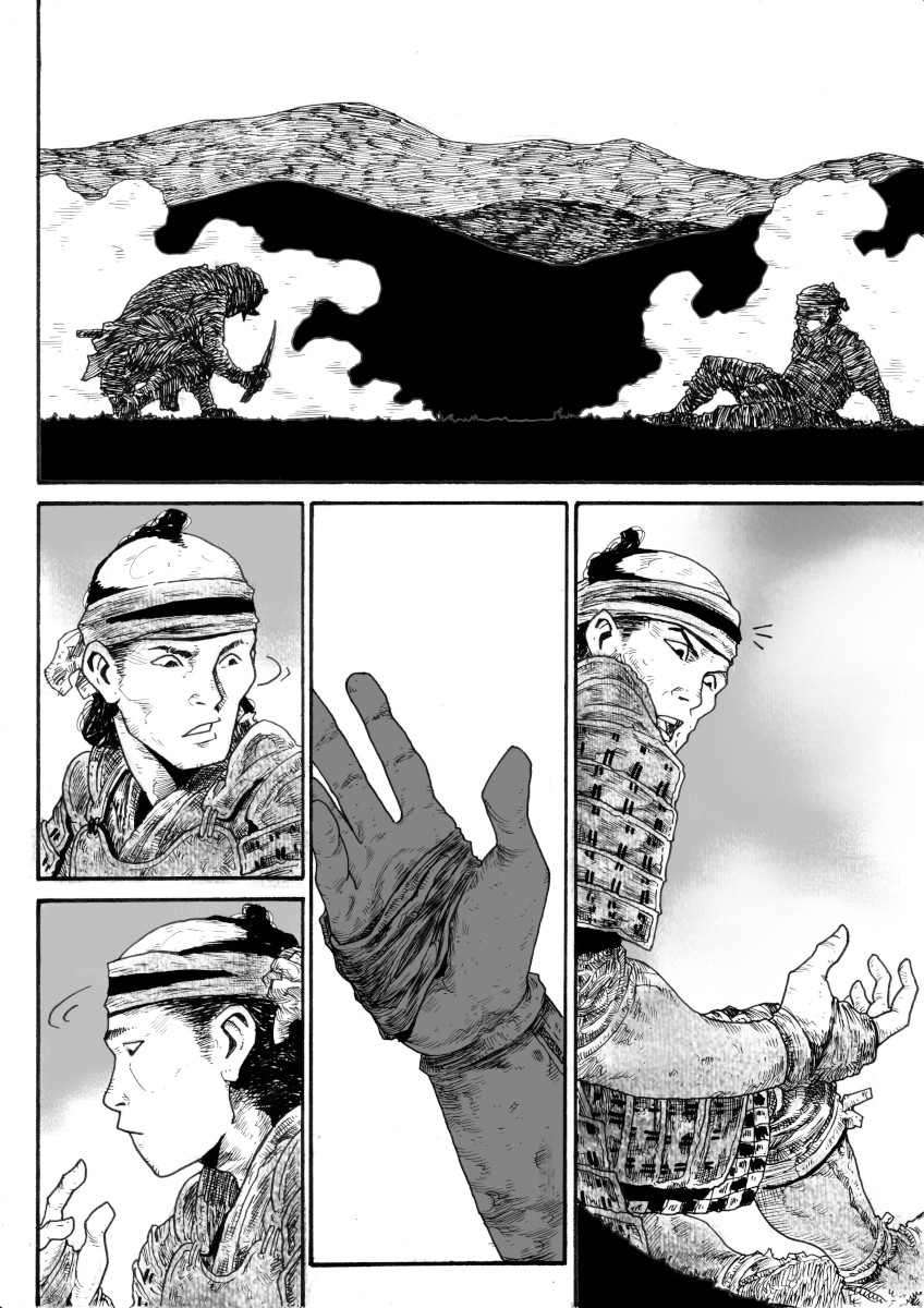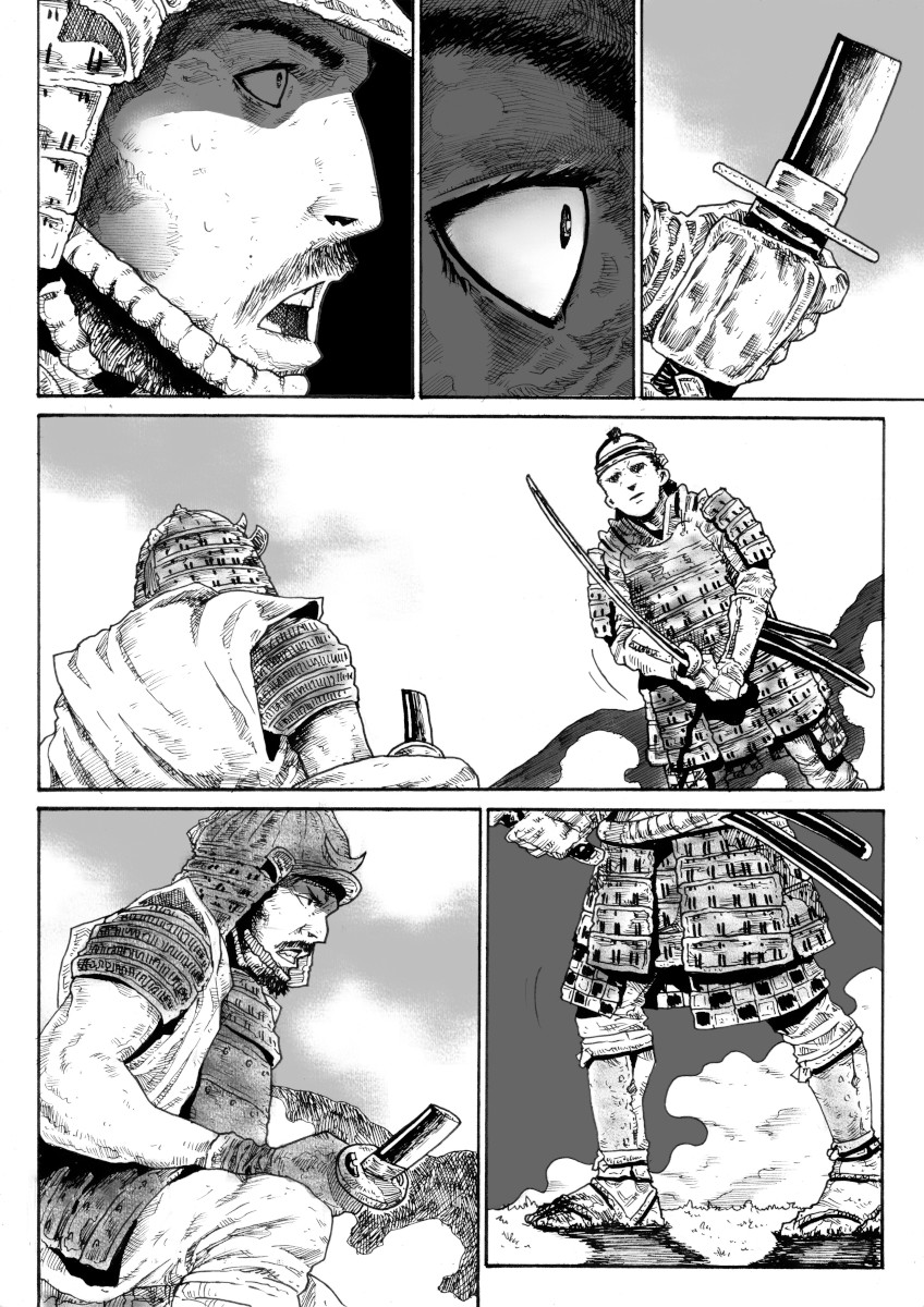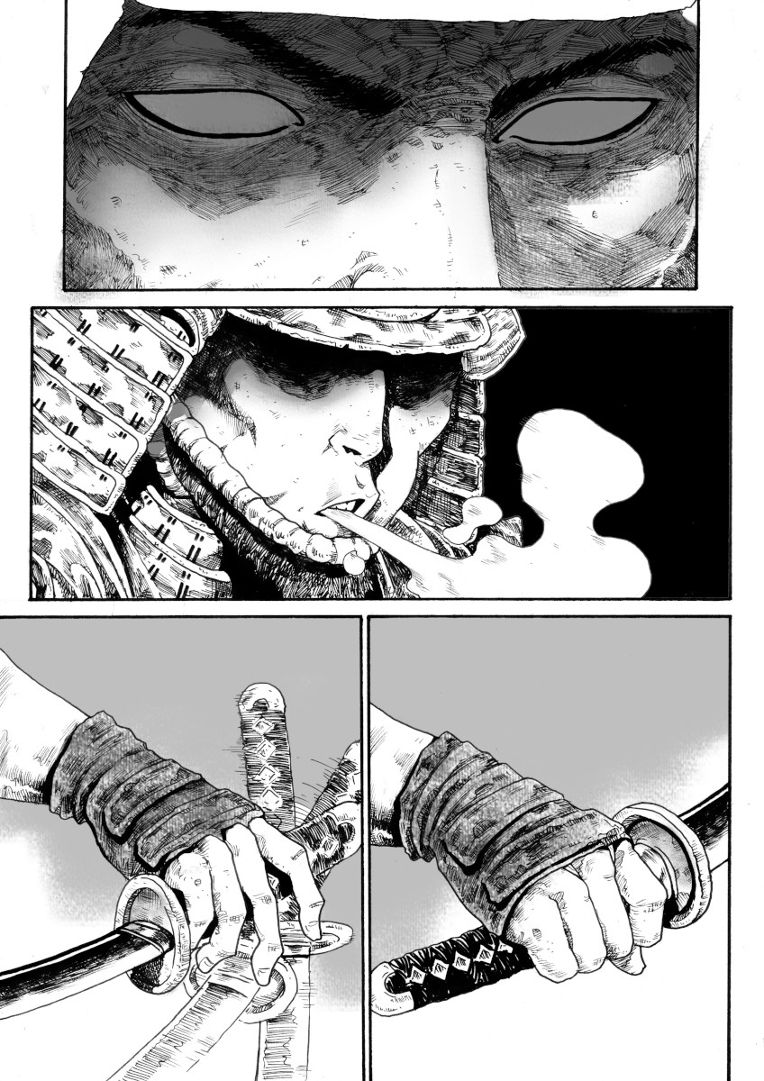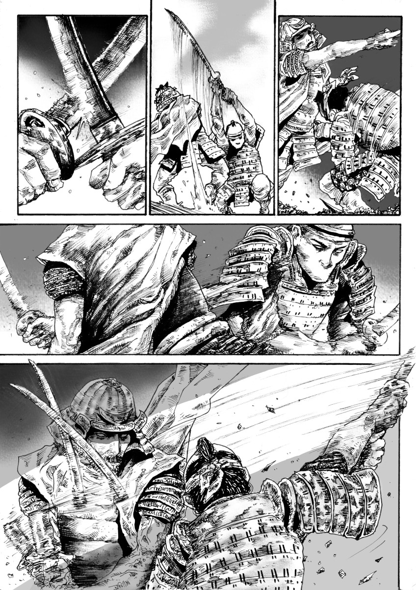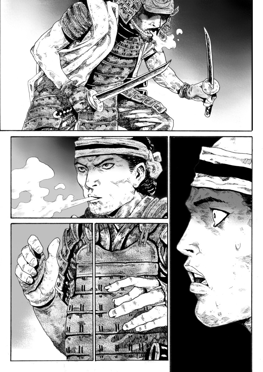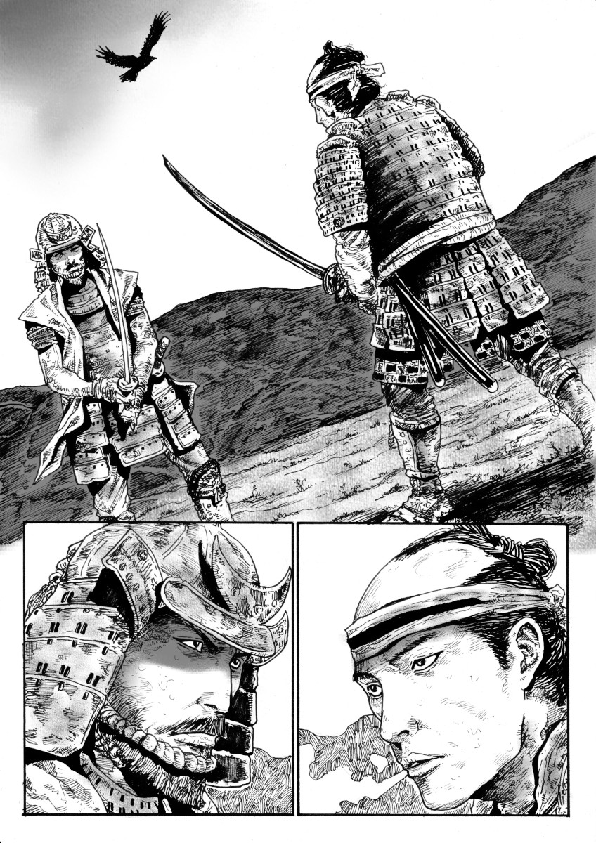 | “when a samurai wearing a helmet returns the sword of his opponent” | |