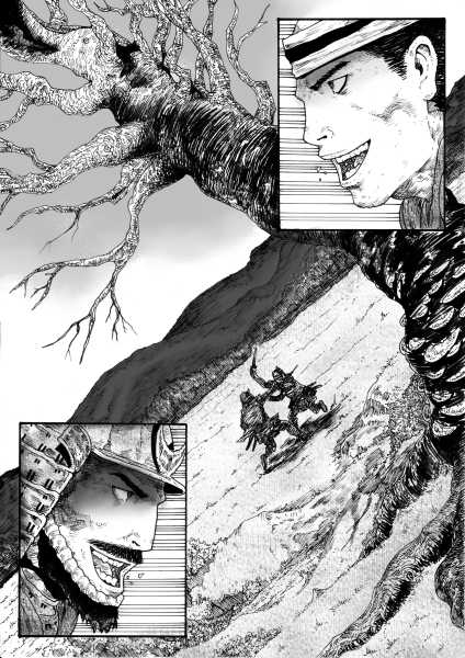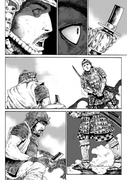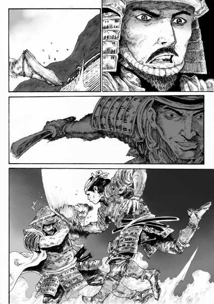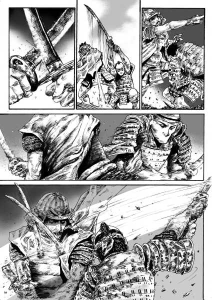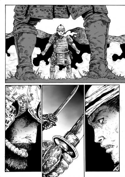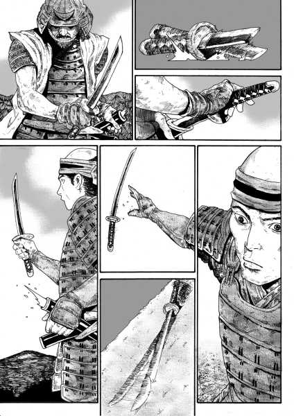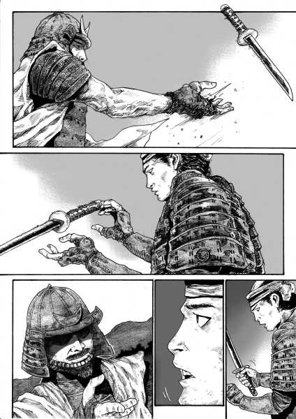 “when a samurai wearing a helmet returns the sword of his opponent”