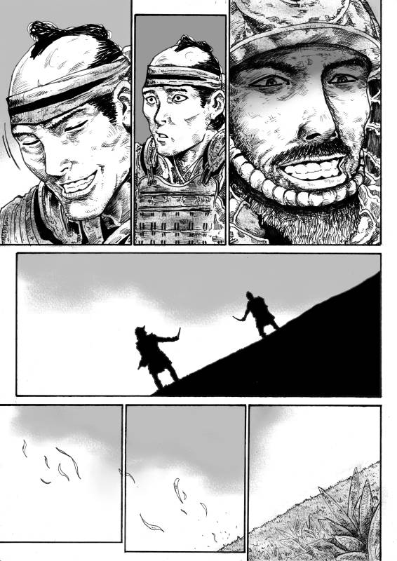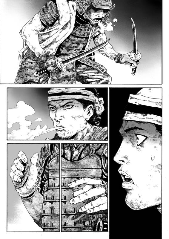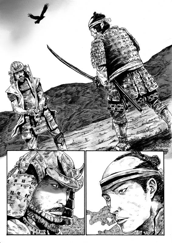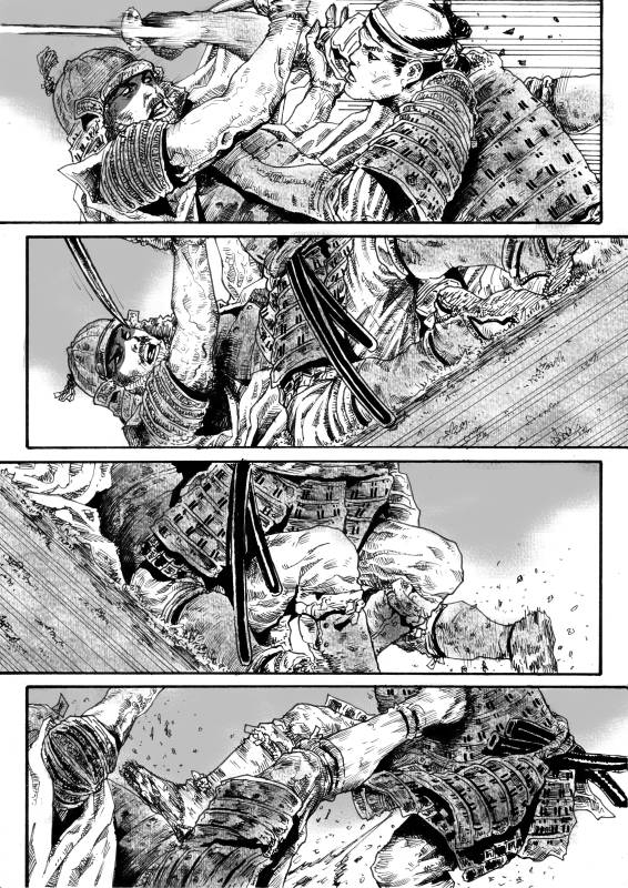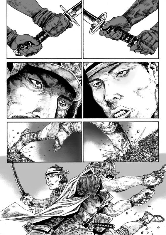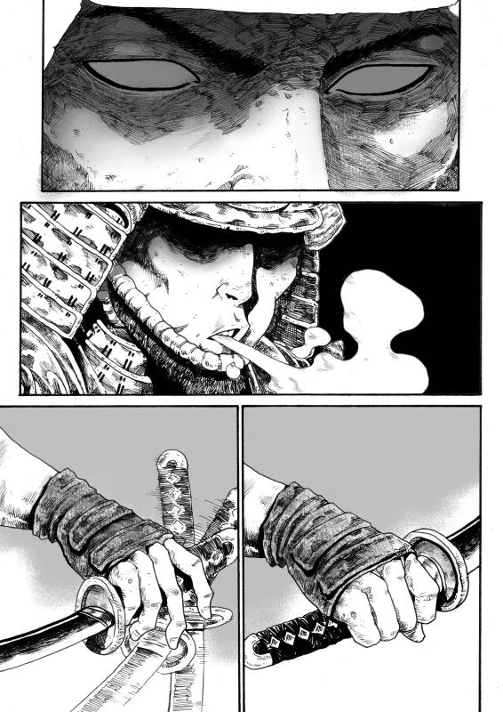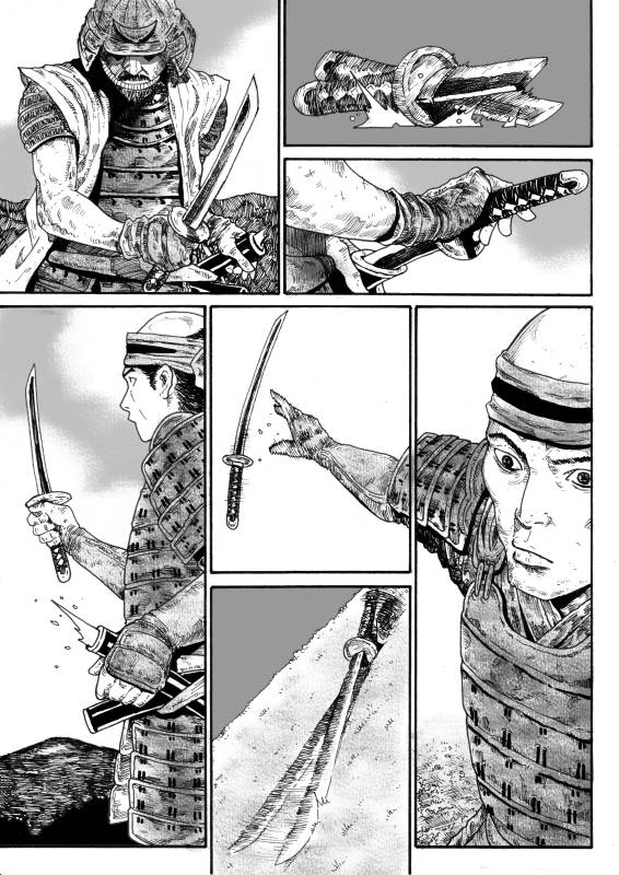 “when a samurai wearing a helmet returns the sword of his opponent”