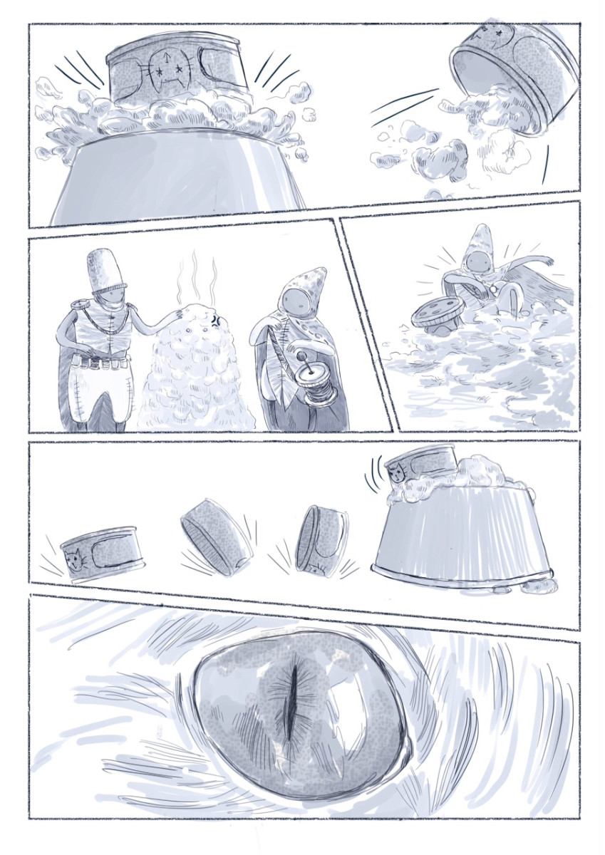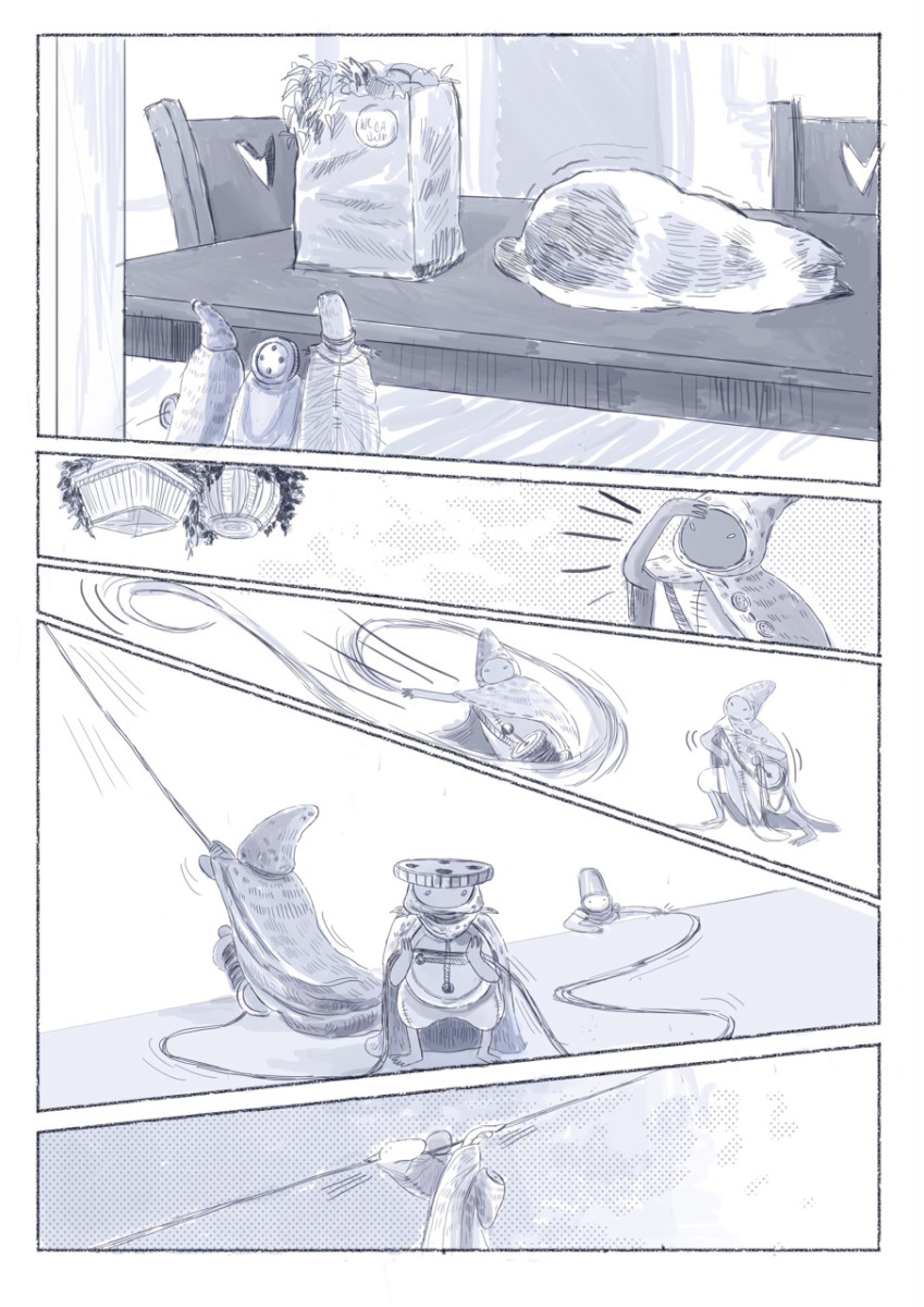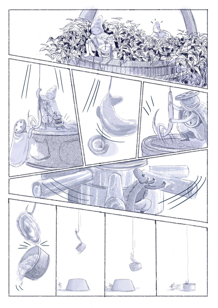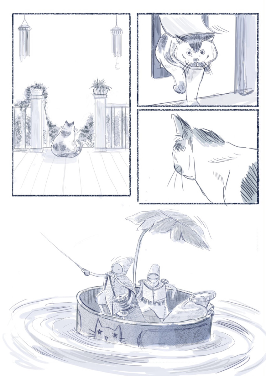 | “I enjoyed designing all the background of the story, the old house that holds many secrets, including three little mysterious guys, that sometimes can help you to open a tuna can.” | |