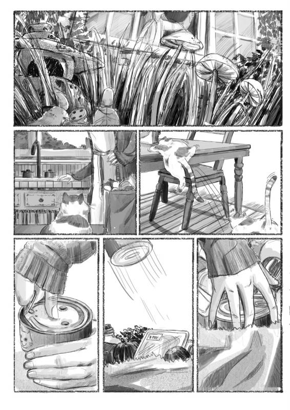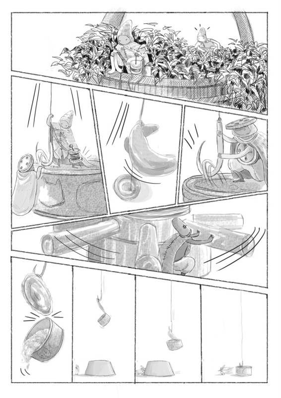 | “I enjoyed designing all the background of the story, the old house that holds many secrets, including three little mysterious guys, that sometimes can help you to open a tuna can.” | |