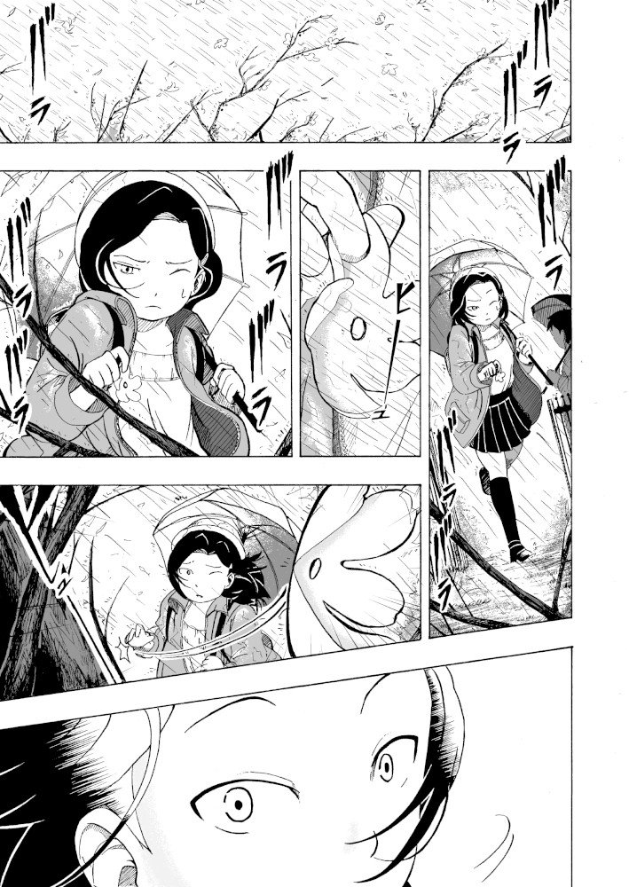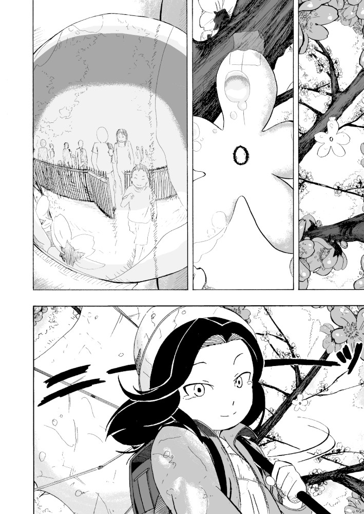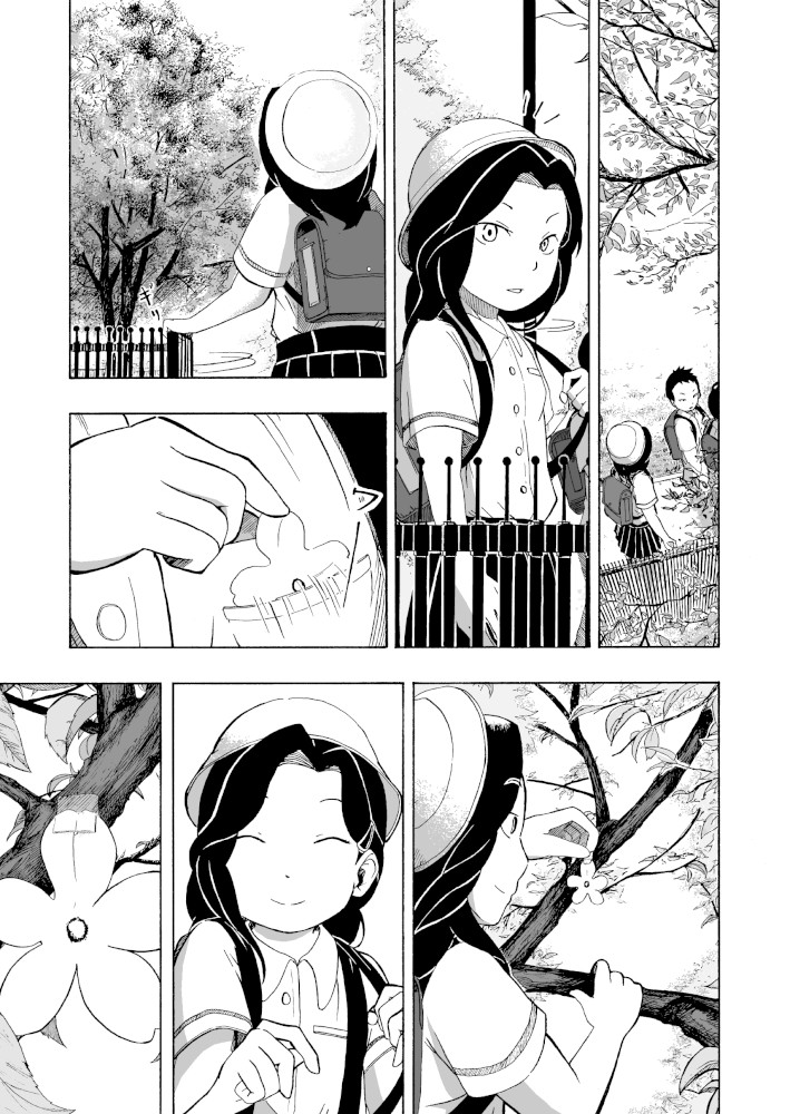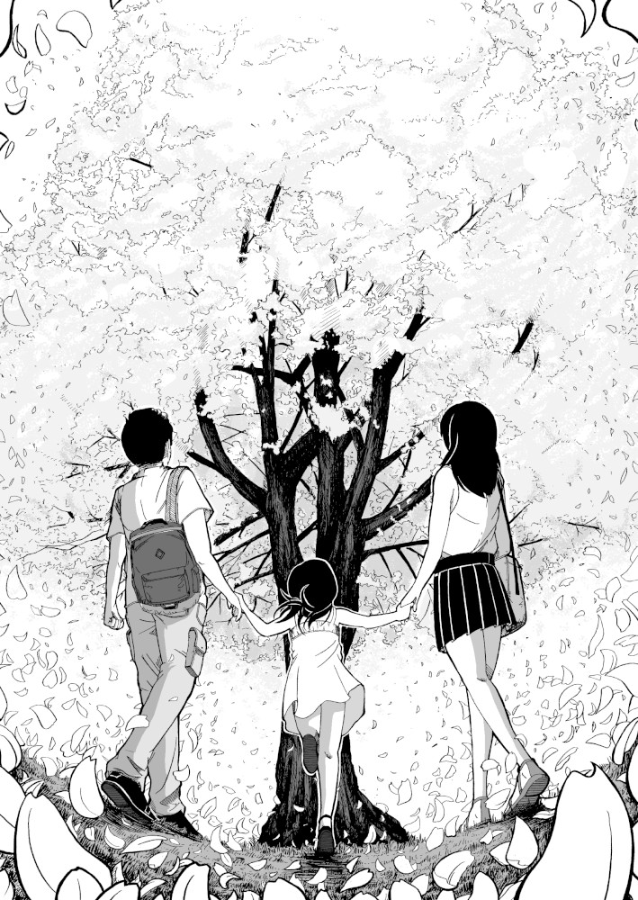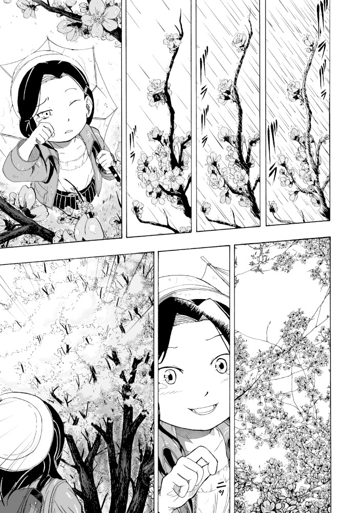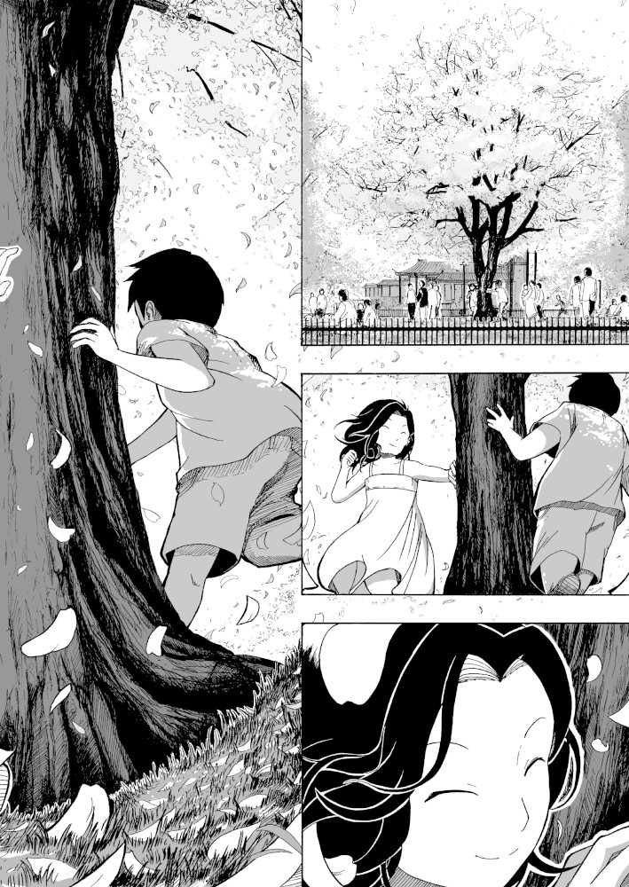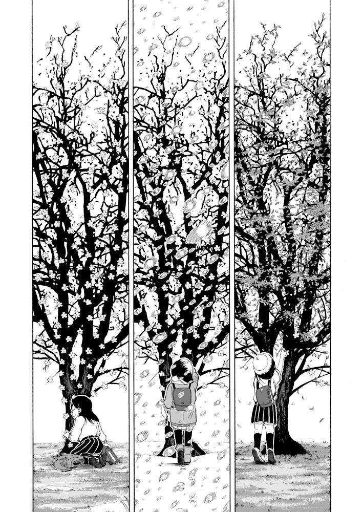 | “This manga gives us opportunity to realize the joy of the social community. Little girl tries to make sakura look beautiful again after it's last blossom touched the ground. Every day she brings little blossom made out of paper and sticks it to the branches that way she expect that people will come back to enjoy beauty of the sakura, beauty of the nature.” | |