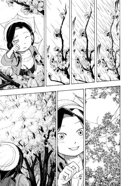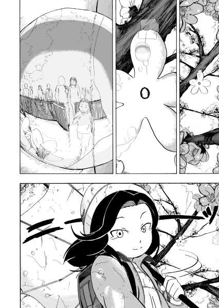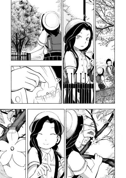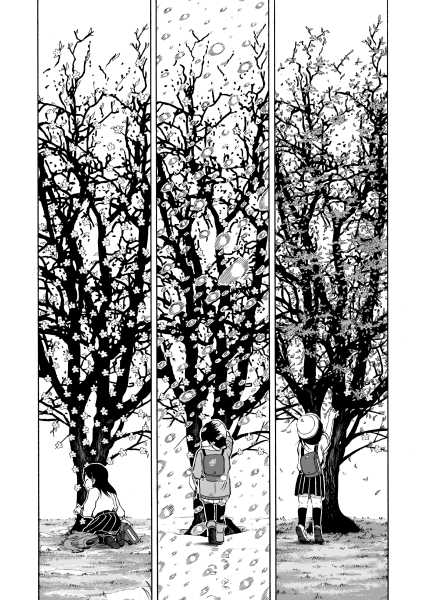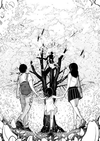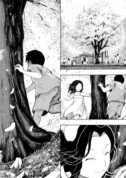 | “This manga gives us opportunity to realize the joy of the social community. Little girl tries to make sakura look beautiful again after it's last blossom touched the ground. Every day she brings little blossom made out of paper and sticks it to the branches that way she expect that people will come back to enjoy beauty of the sakura, beauty of the nature.” | |