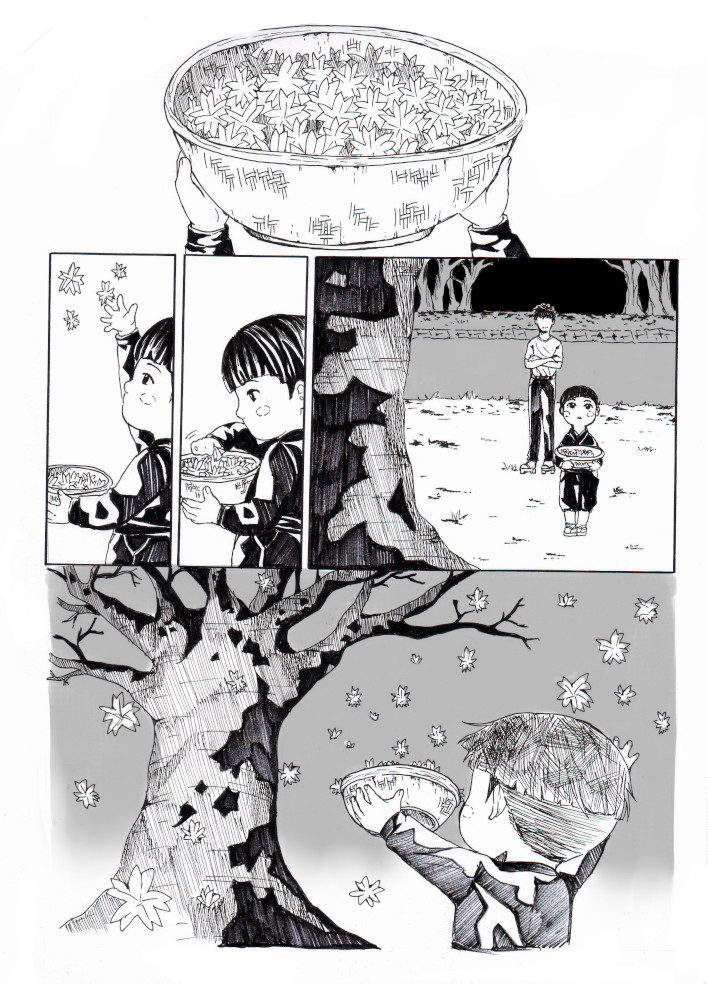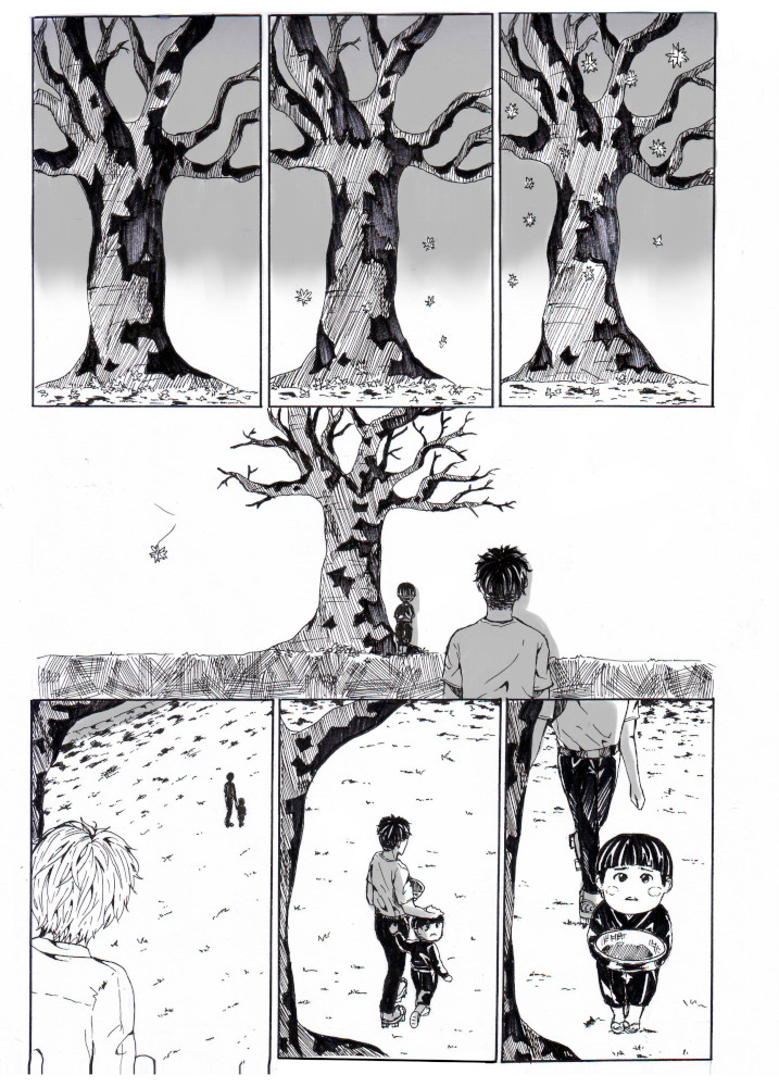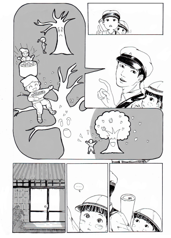 | “When the kid folding origami to grow up the sakura tree.” | |