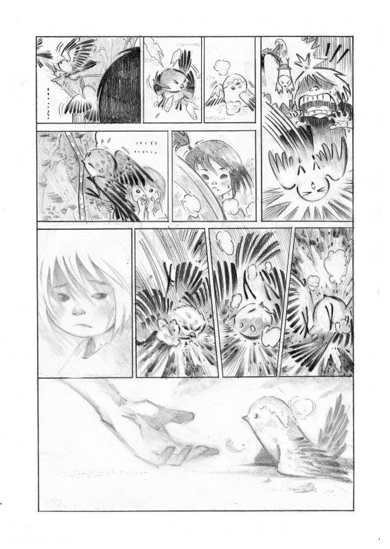 | “This is the first time I make a manga entirely in pencil. hb, 2b, 3b, 6b and one erase gum, a great experience! inspiration for storyline comes from my memories of tiny owl that I nurtured 9 years ago” | |