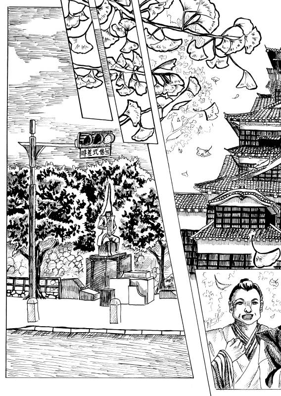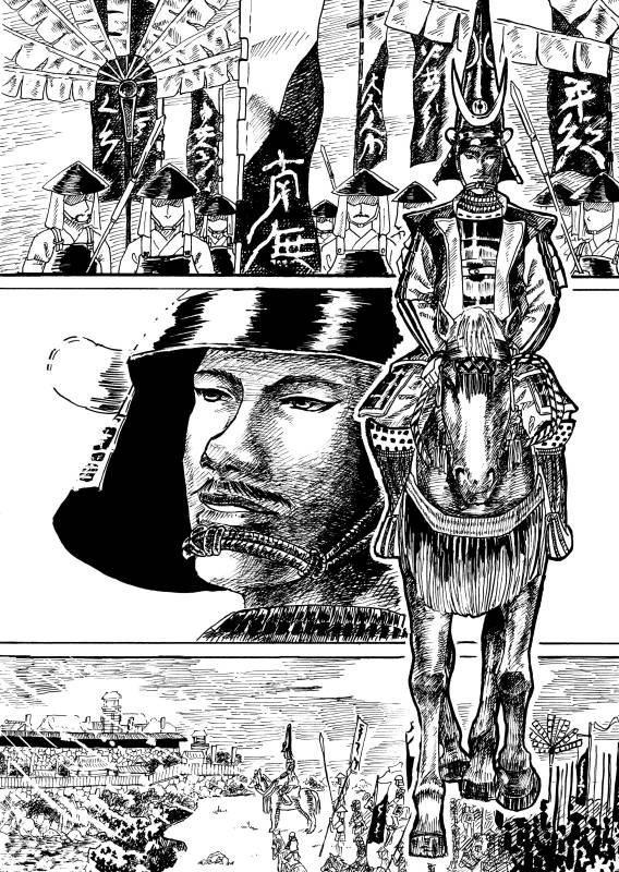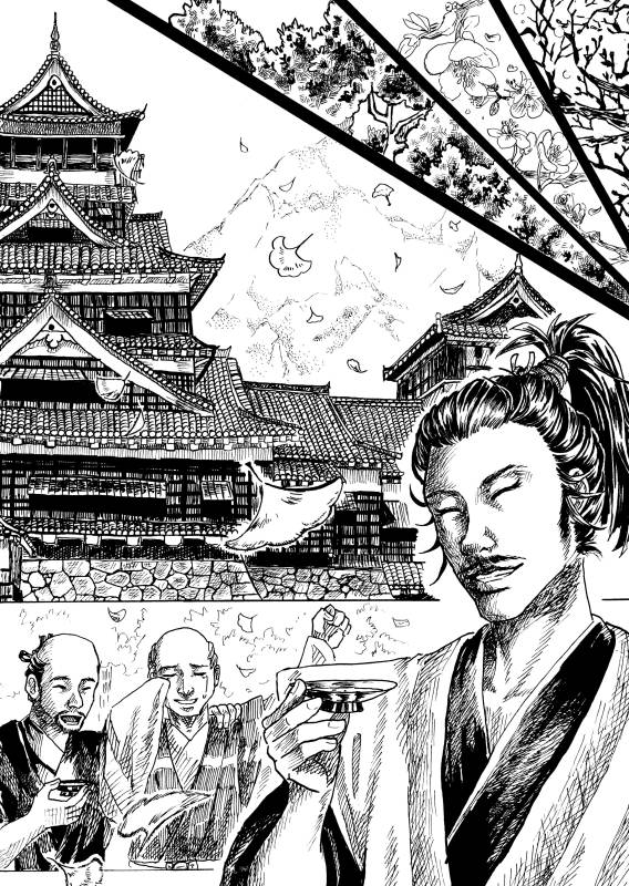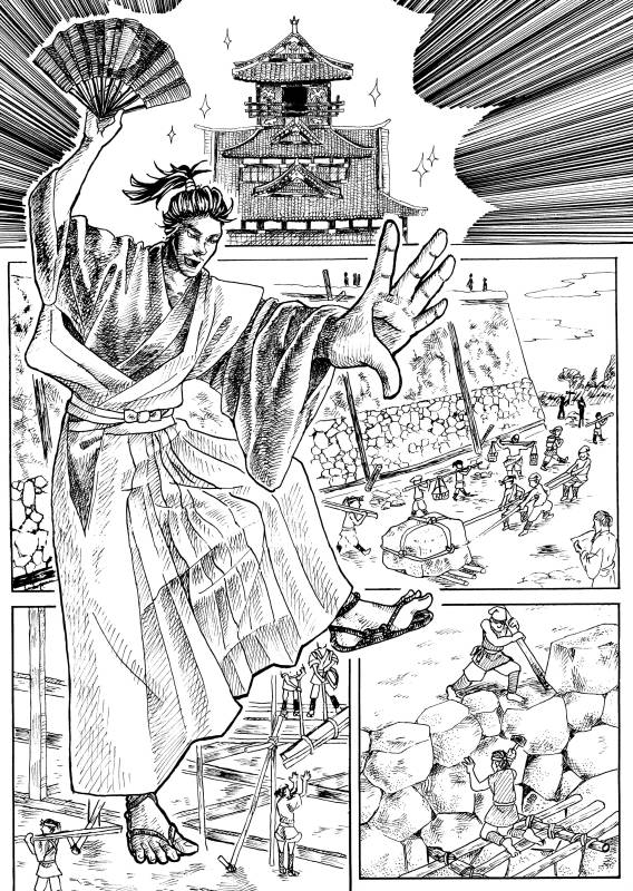 “Aah, this is such a last minute entry! I hope I did well enough for my first SMA participation. I didn't have any inspiration for a long time, and I was about to give up, but then I remembered about Lord Katou Kiyomasa... In the end I decided to draw the event when Lord Kiyomasa renovated Kumamoto Castle. Based on the models and reconstructions it looks like the tenshu of the castle that we can see today isn't much different from the original. I'm really glad it was, haha. I'm a bit perfectionist when it comes to historical details, and it will make me cry if the real castle is completely different and I won't know how to draw it >___< Lord Kiyomasa is... kind of based on the face of the Kiyomasa performer from the Kumamoto bushotai (samurai team), hahaha. When I watch videos of him, he seems very full of excitement, and I think his character really suits the theme :P”