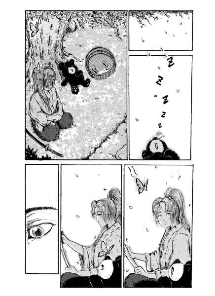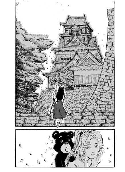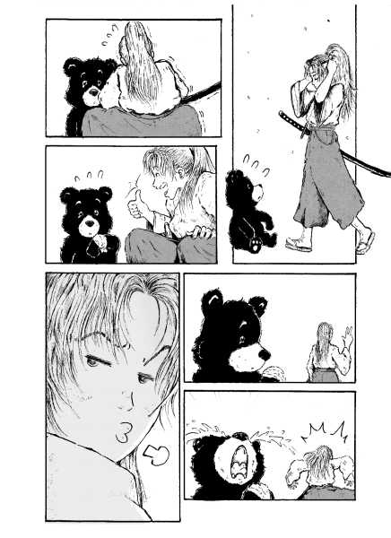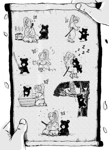 “See how this serious samurai has a good heart! He really ends up having fun with this little bear! I really like the scene where he tries to treat the bear's paw.”