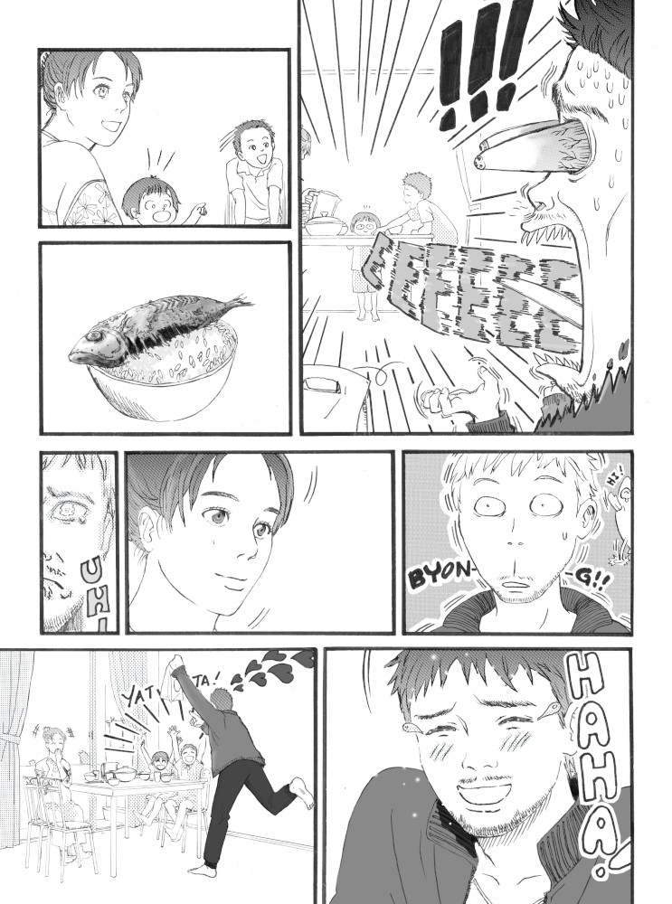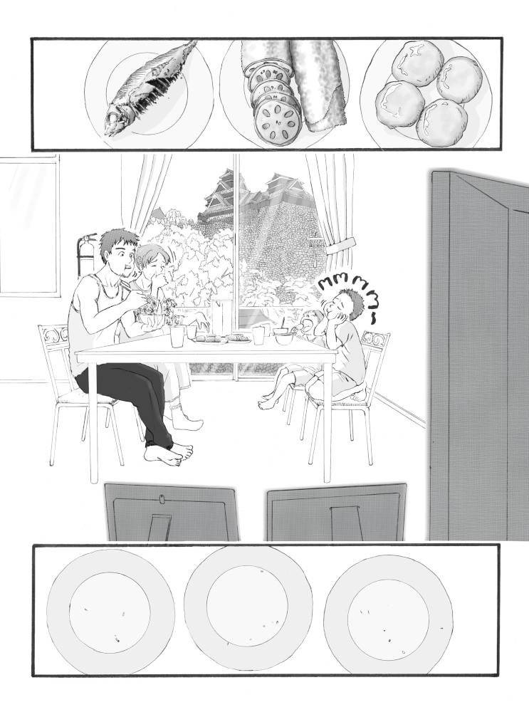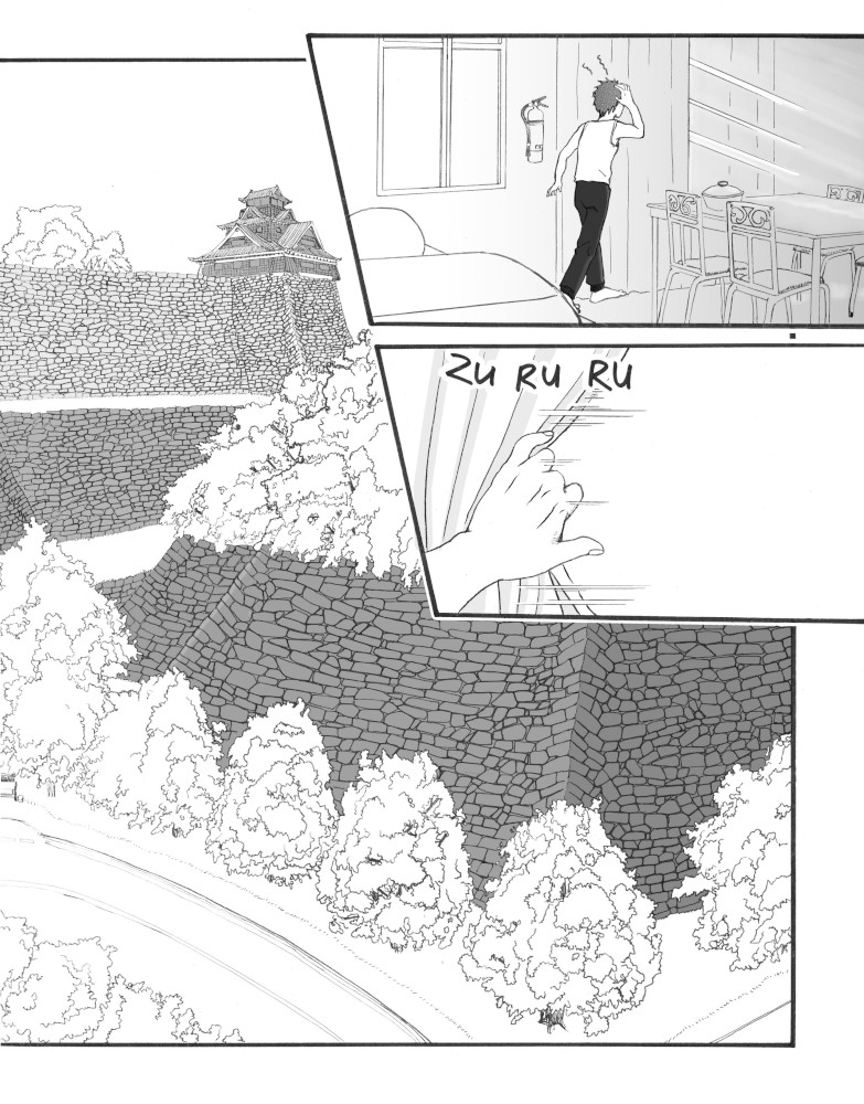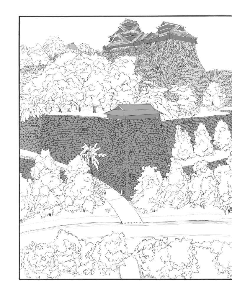 “My favourite part of this manga is the spread page of Kumamoto Castle. I really amazed its majestic foundation. It must be a great inspiration and motivation to the people around there throughout the ages.”