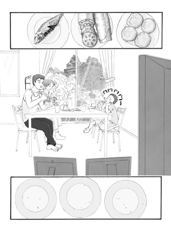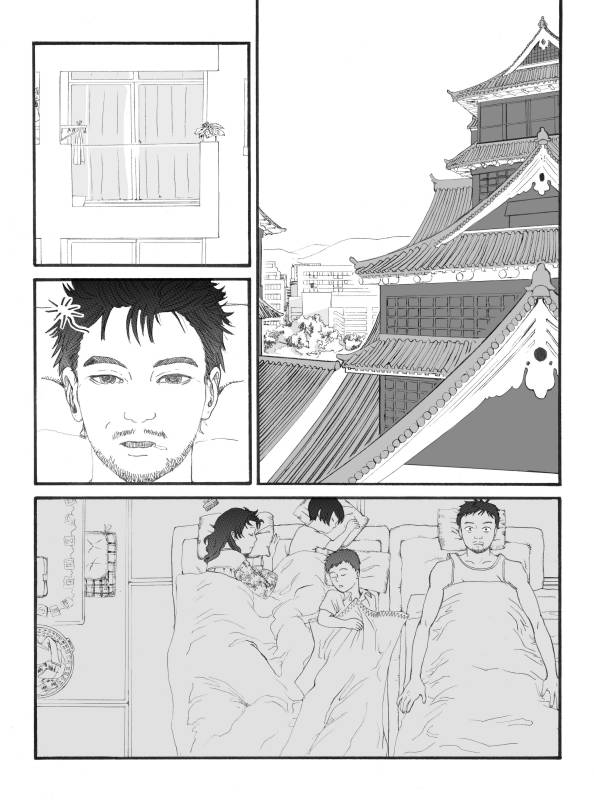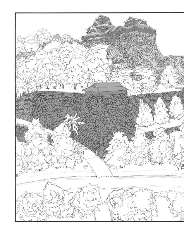 “My favourite part of this manga is the spread page of Kumamoto Castle. I really amazed its majestic foundation. It must be a great inspiration and motivation to the people around there throughout the ages.”