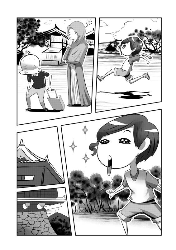 | “Mom and Dad asked Lupi take a picture for them with Kumamoto castle as background. But, look at the result!! Lupi focused the camera to a beauty Japanese girl.. How beauty that girl..!! LOL” | |