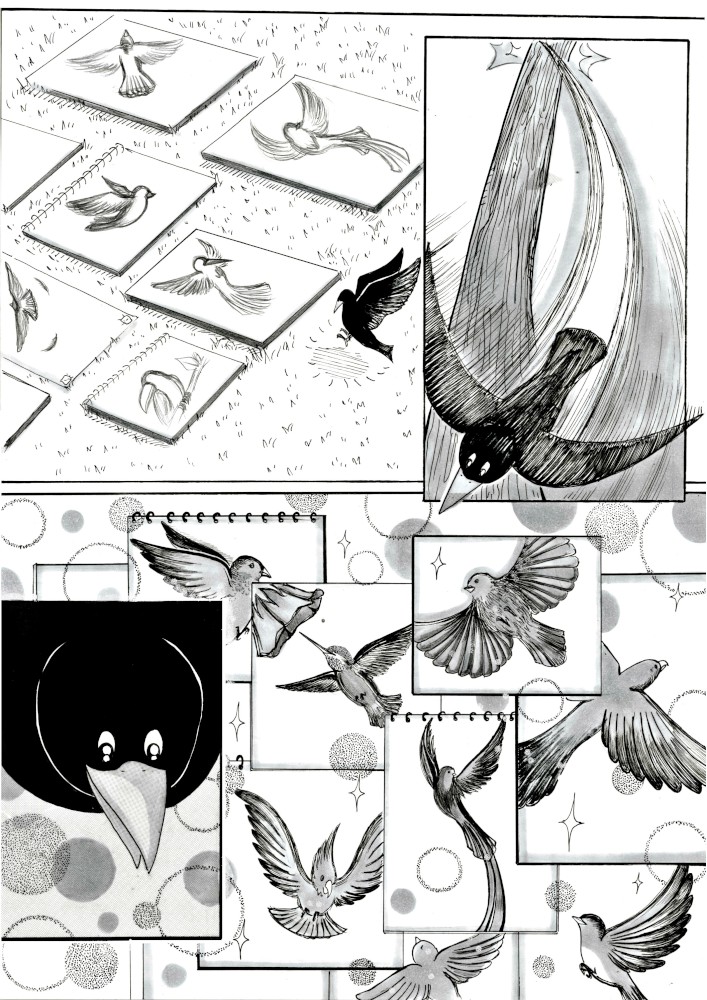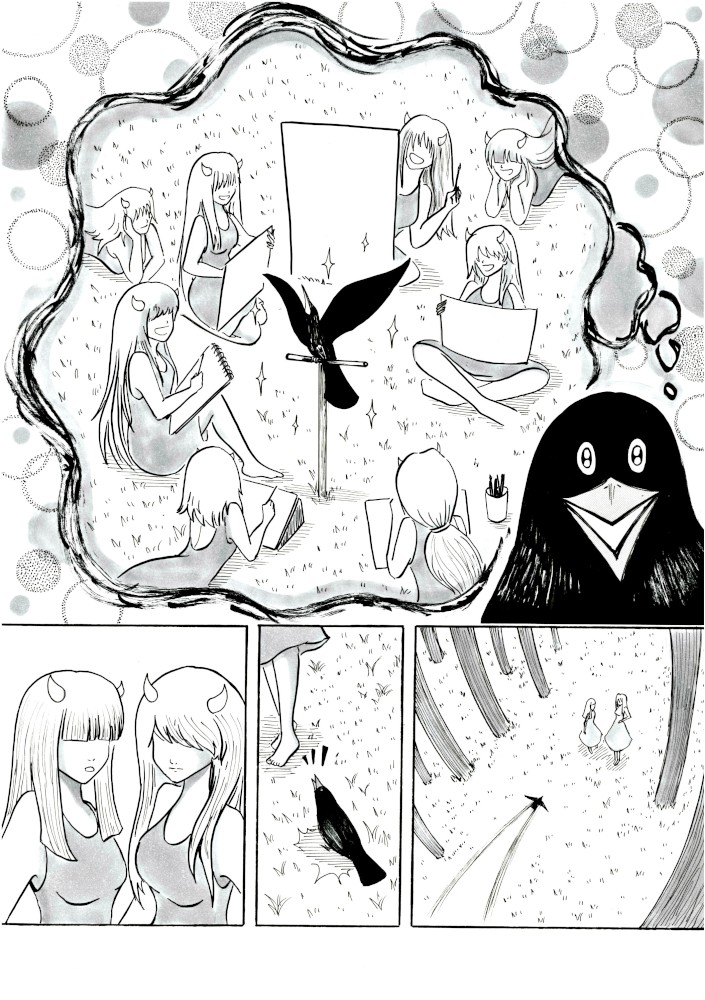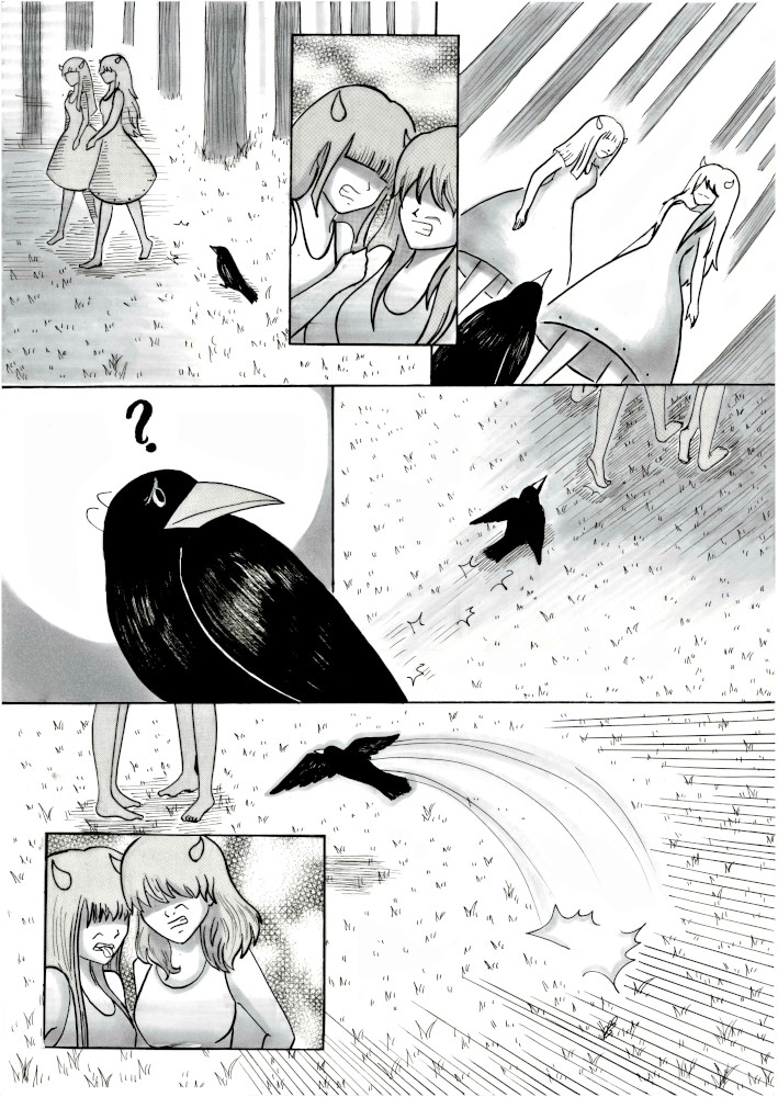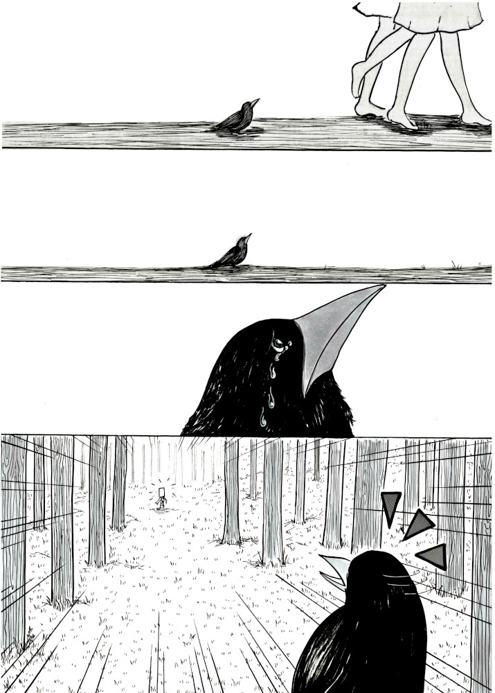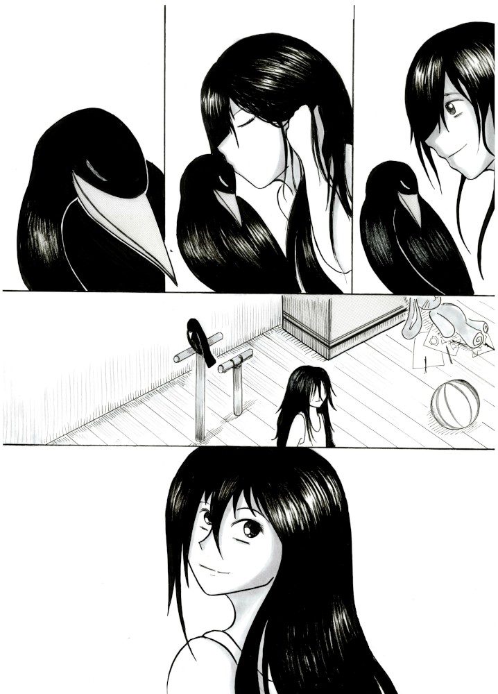 “Hi everyone ! , hope you enjoy this manga , I put a lot of imput on it . In the city where I live there are a lot of crows (really a lot) and I see them every day , and although some people dislike them or think they are not pretty birds there are also a lot of people who loves them including me .”