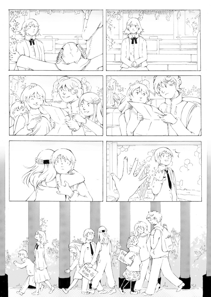 | “Uhm... The last page was lots of fun to draw, but the ninth is the one I like the most as a part of the story.” | |