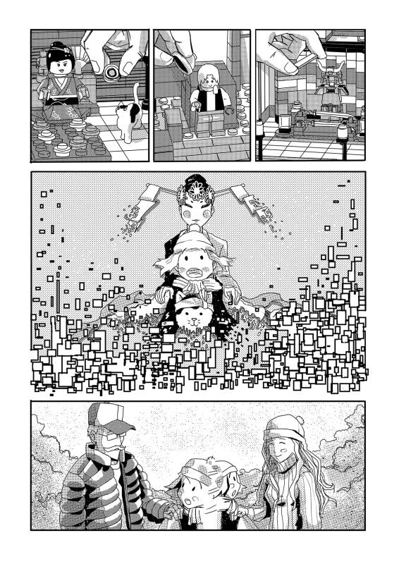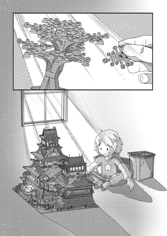 | “In this manga I tried to show the spirit of discovery of a boy in Kumamoto, and how he recreated in a child's play. I believe this is a form of 'wasamon'. Hope you like it!” | |