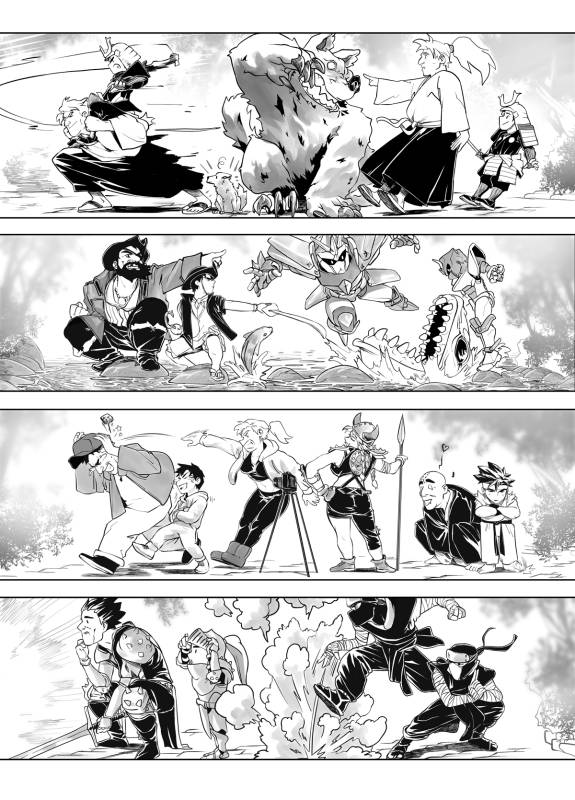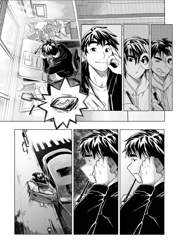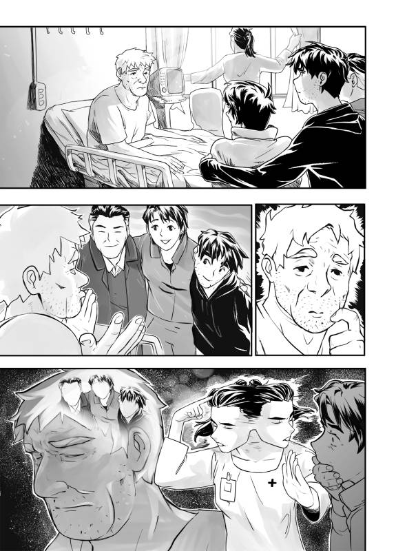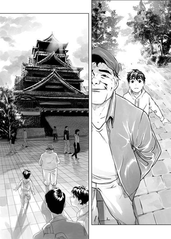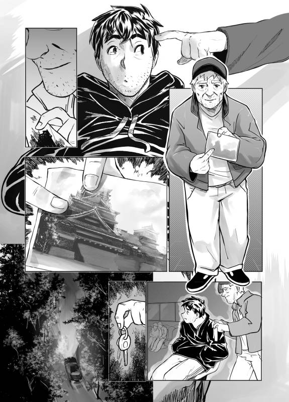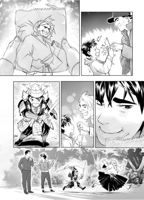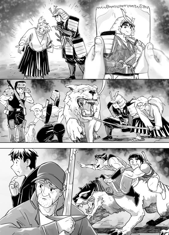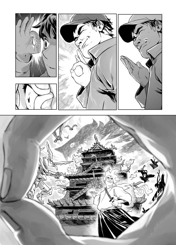 “In fact, producing this manga was good by itself. My favorite scene is when the old man unlocks Wasamon's gaze on the boy, allowing him to see a new world.”