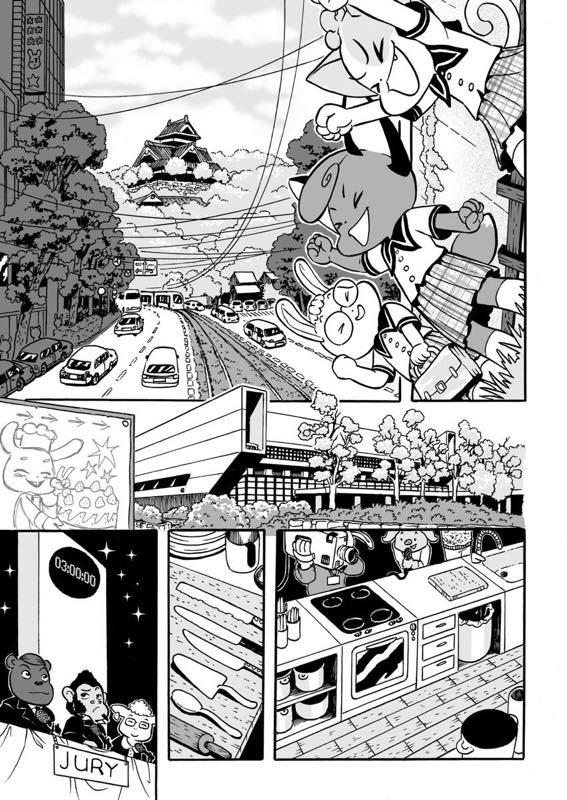 | “Visiting Kumamoto City and Takamori in Kumamoto prefecture last year, plus trying out ikinari dango in real life certainly helped me to draw the scenery for this piece. I hope you like it!” | |